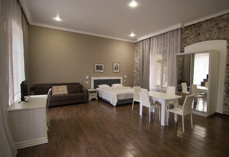 Корпуса отеля «Абаата» (Гагра) расположен на охраняемой территории, украшенной южными растениями. «Абаата» готова предложить комфортные номера различных категорий. Удобные планировки, приятная мебель, отлично оборудованные санузлы — все это поможет отдохнуть душой и телом. Для удобства гостей в комнатах есть телевизор, холодильник, кондиционер, фен, можно воспользоваться бесплатным Wi-Fi и сейфовыми ячейками.