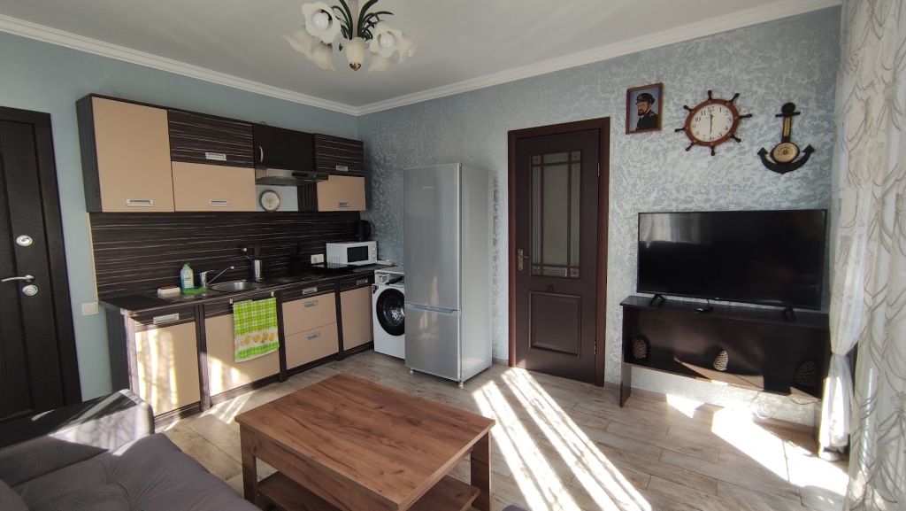 Студия с кухней с балконом и с красивым видом из окна