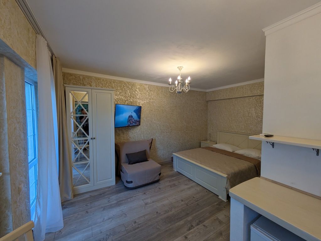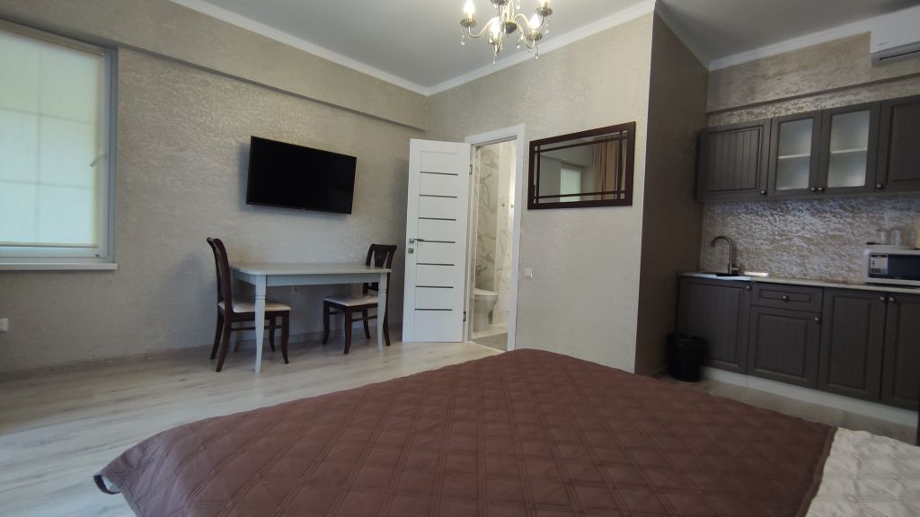 Студия с балконом и с красивым видом из окна