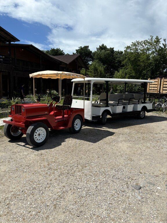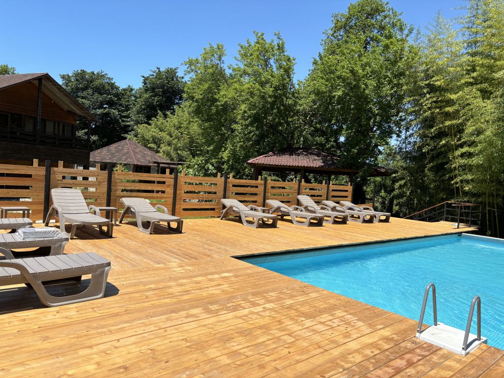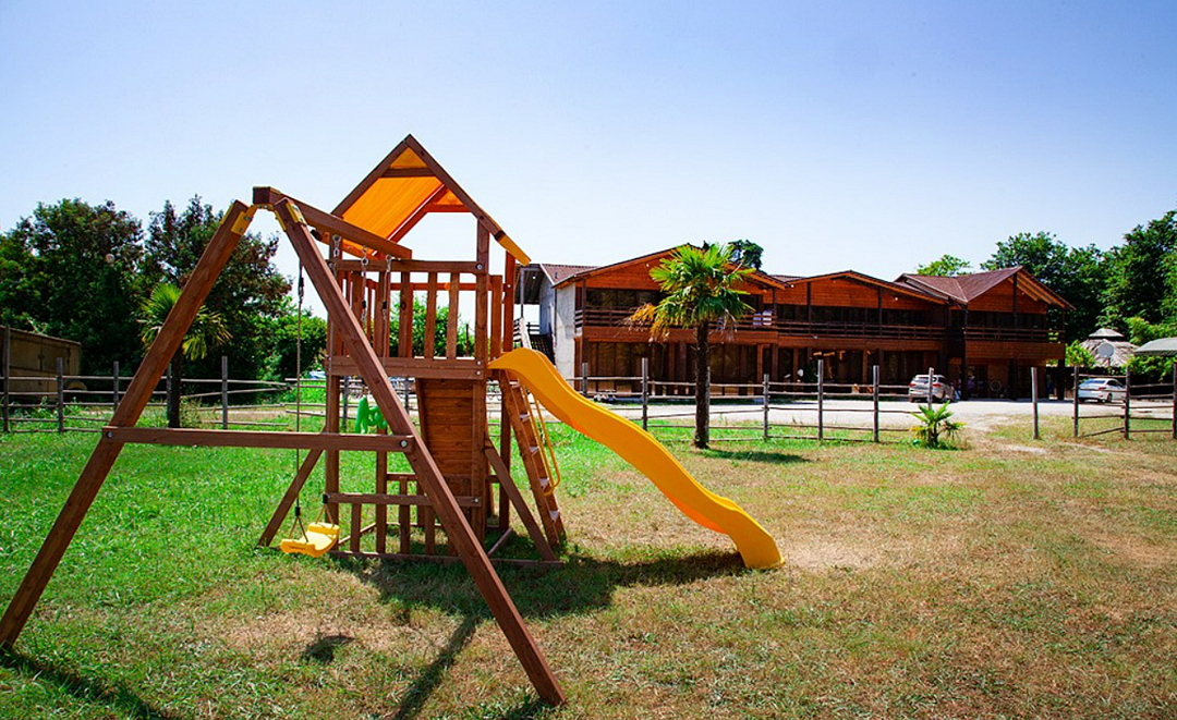На территории комплекса работает кафе, где гости могут покушать. Есть зона для барбекю, можно устроить пикник и пожарить мясо. В прокате есть велосипеды, дартс, бадминтон. Для детей оборудована игровая площадка.