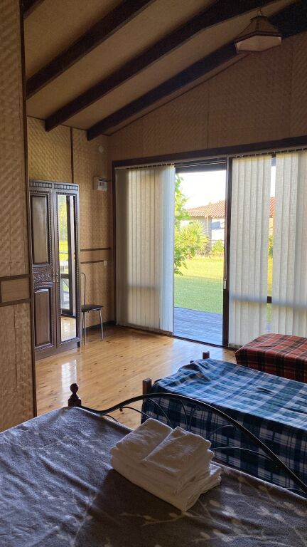 Гостевой дом представляет собой комплекс из 8 коттеджей и 2-этажного спального корпуса. Номерной фонд отличается наличием необходимой бытовой техники и функциональной мебели. Все комнаты оборудованы индивидуальными санузлами, односпальные или двуспальные кровати, шкаф, прикроватные тумбочки, вешалка, зеркало. Номера оснащены кондиционером, телевизором, холодильником, Wi-Fi.