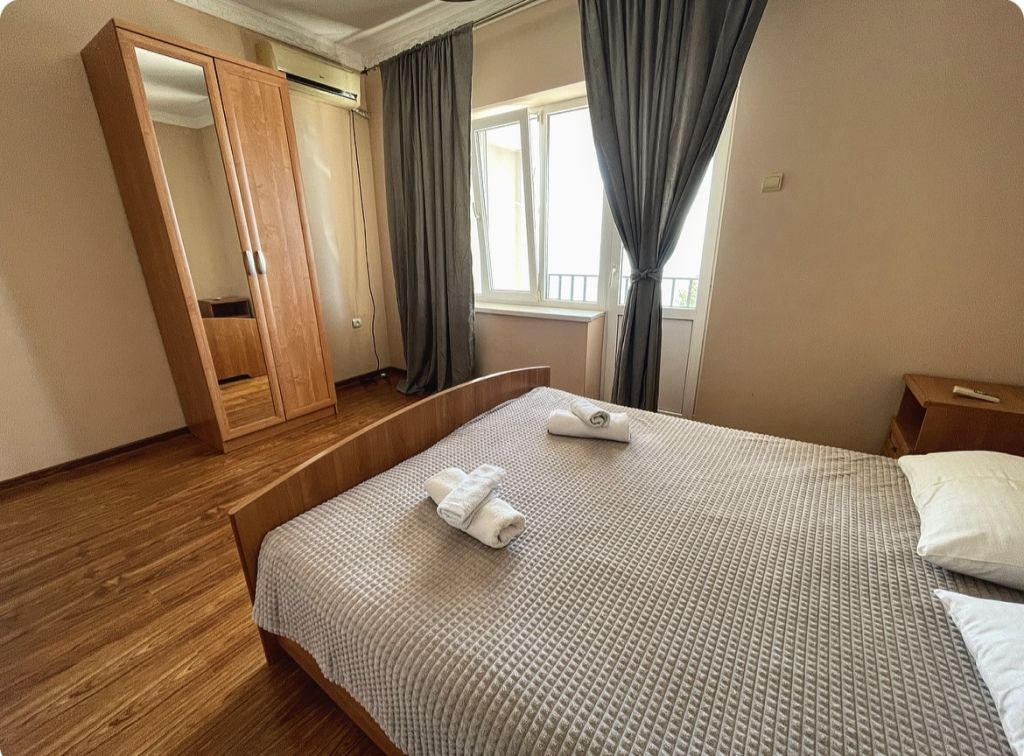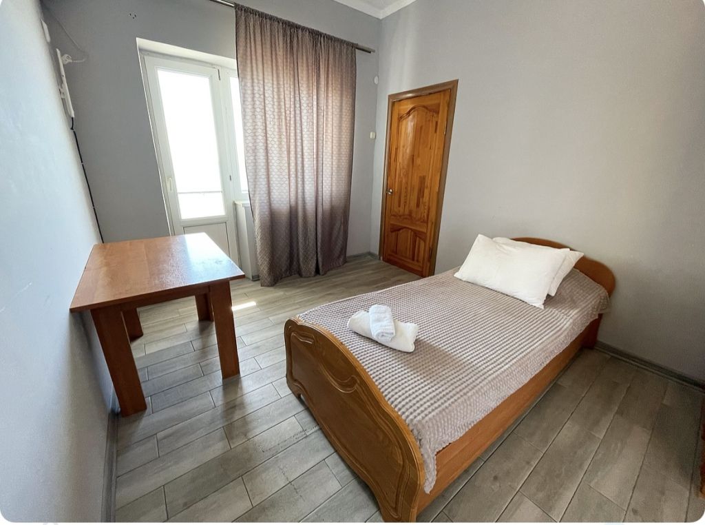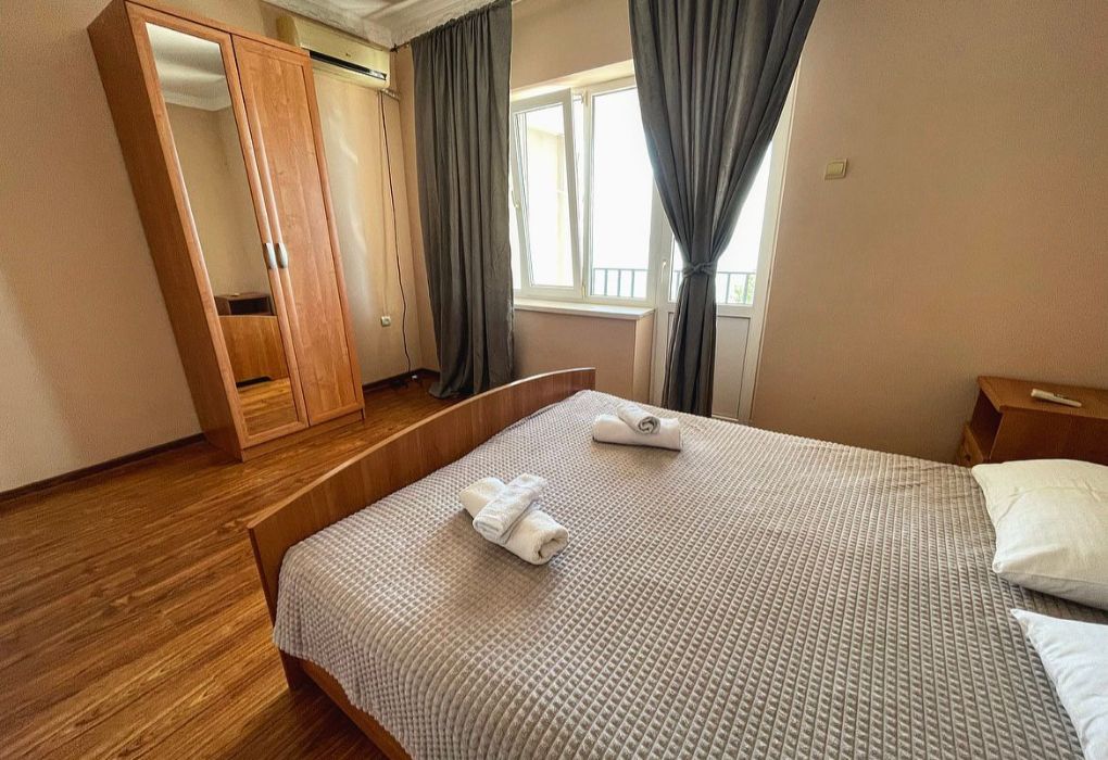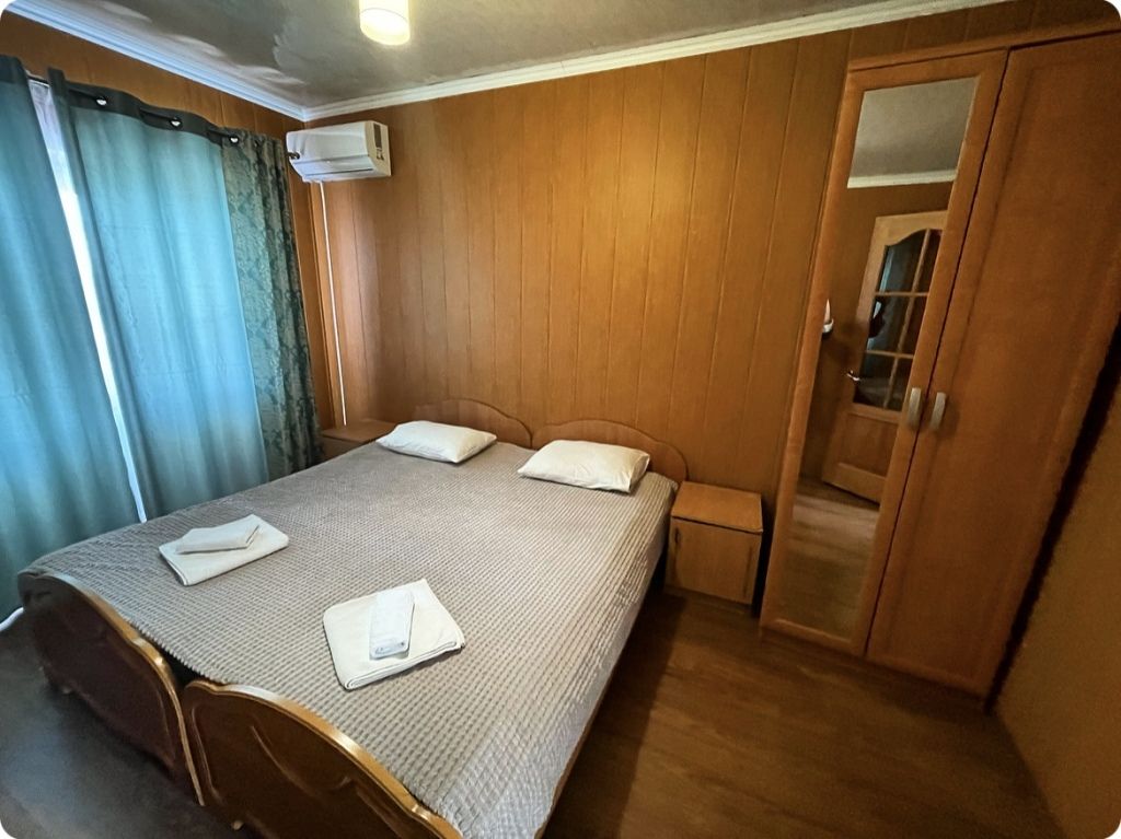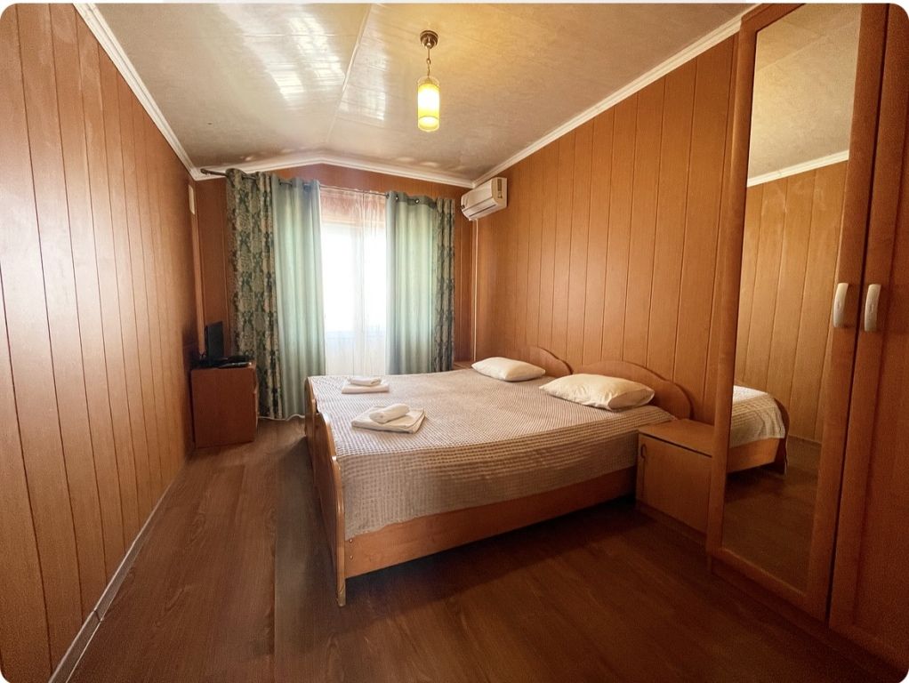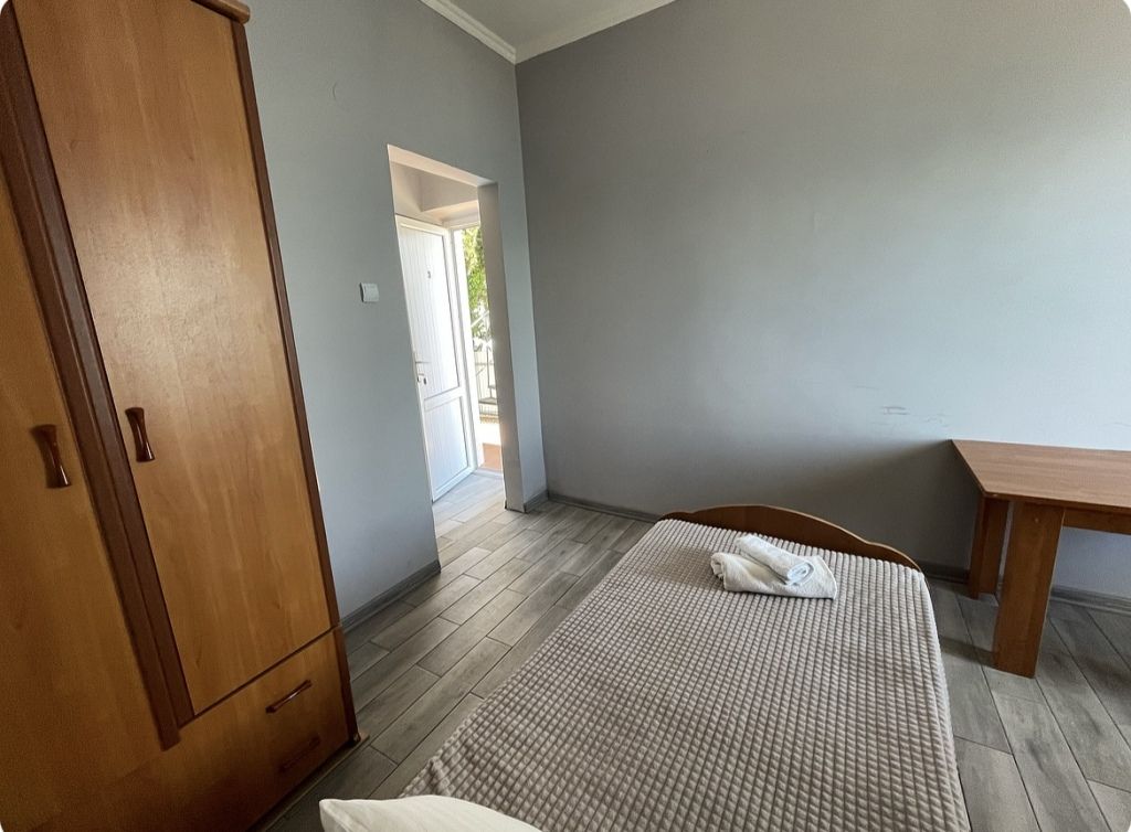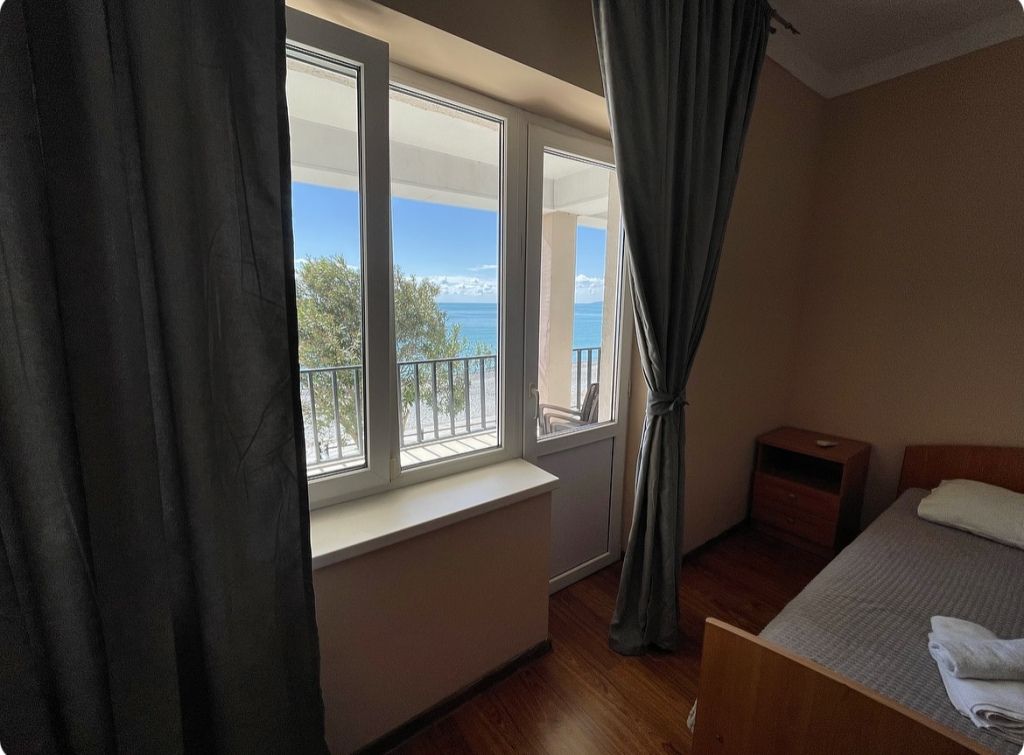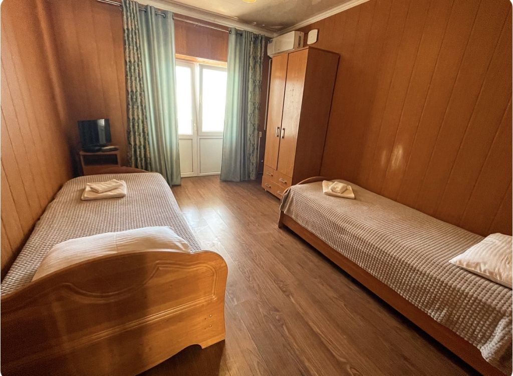 Путешествие с парой👍🏻Приветствую всех) надеюсь мой отзыв будет вам полезен) Как и все остальные перед тем как ехать в этот гостевой дом, я начиталась отзывов) и расстроилась из-за них. И вот настал тот день когда мы прилетели в чудесную Абхазию🫶🏻 приехали в гостевой дом(минус в том , что нет ресепшена) нас встретил охранник и дал ключи от нашего номера. Зашли в номер , осмотрелись в целом неплохо) но было видно, что не помыли полы. Не проблема, взяла сама швабру и протерла. Постельное белье было чистое! В номере имеется, холодильник, чайник, телевизор который не работает. В нашем номере за время отдыха нашего никто не убирался, смена белья была на 5 день, оставили на улице и ушли))))) ну это даже лучше, что не убирались, потому что для себя самой я лучше приберусь! Я в Абхазии не первый раз отдыхаю) и я привыкла , что при заселении объясняют правила и все прочее, где что находится тут и тд) Тут же такого не было( благо когда мы пришли в столовую и там нам Диля(шеф -повар) все объяснила) Что касается насчет еды, ну это просто отвал всего, было очень вкусно как дома!!! Еда разнообразная и сытная. Девочки очень вкусно готовят! Спасибо за это Диляре, Светлане и Юле))) а если есть у кого-нибудь предпочтения или аллергия на что-то , девченки все заменят, сделают как лучше! При гостевом доме есть свой бар на пляжу, там можно приобрести алкоголь, воду, мороженое и тд, что очень удобно! Да и вообще расположение дома очень удобное, через дорогу находится вкусная шашлычная👍🏻 аптеки, магазин бытовой химии и продуктовые магазины) все в шаговой доступности) Видела тут негативный отзыв, мол «рядом находится кафе и там всегда музыка , что невозможно уснуть». Да рядом расположена кафешка с караоке, НО! музыка перестает играть после 00:00! Так что все хорошо! А еще у Светланы ( повар) можно приобрести экскурсии, она все объяснит и расскажет. Даже если ты уезжаешь во время обеда на экскурсию, Светлана нам оставляла наш обед) вообщем голодными там вас не оставят! Вообщем ставлю твердую 4! Сняла звезду за грязь в номере по приезду) А так в целом советую данный гостевой дом. Расположение отличное! Дома прям у берега, никуда ходить далеко ненадо, все все рядом! Вечером захотели поужинать сходили напротив в шашлычную и сели у моря, крааасота! Так же есть недалеко кафе Калипсо👍🏻 Обязательно вернемся!!! И порекомендую всем) Хотелось бы еще добавить по поводу Wi-Fi , в корпусе в котором мы были, получается корпус рядом с охраной, скорость интернета очень, ну очень слабая;( ночью только работал изредка) надеюсь данная проблема наладится)))