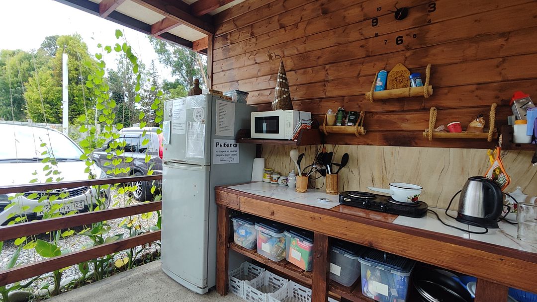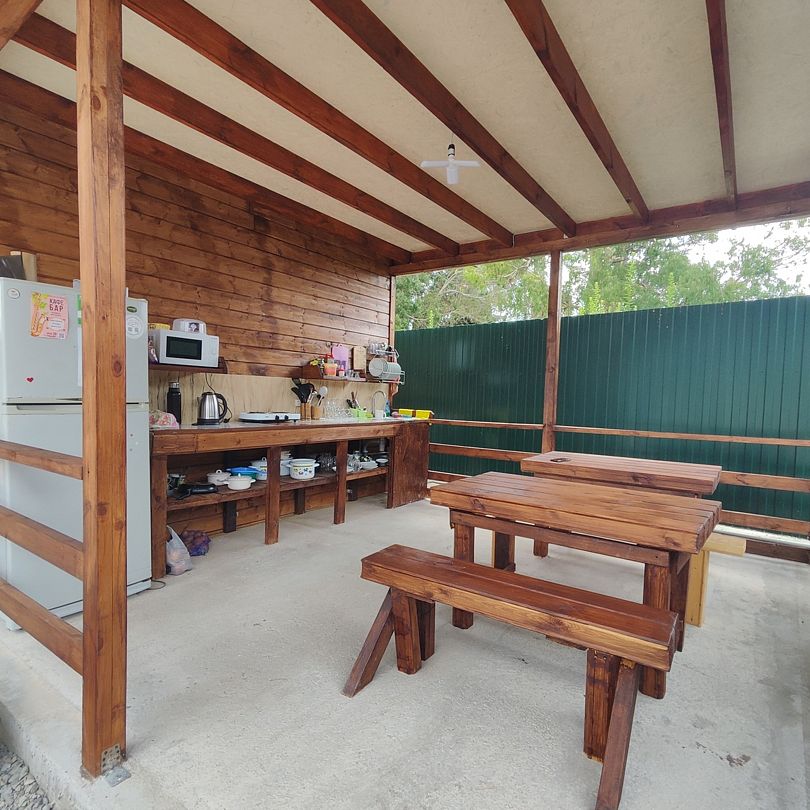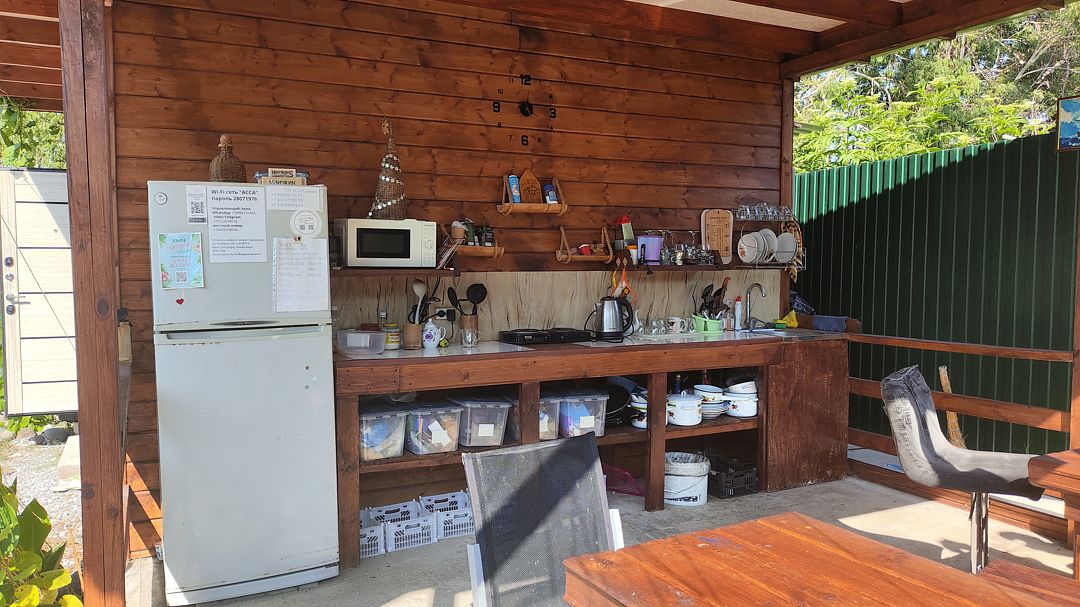 На территории оборудован каркасный бассейн, есть бесплатная парковка, летняя кухня с СВЧ, электроплитой, посудой, холодильником. Также в распоряжении гостей мангал с принадлежностями для барбекю.