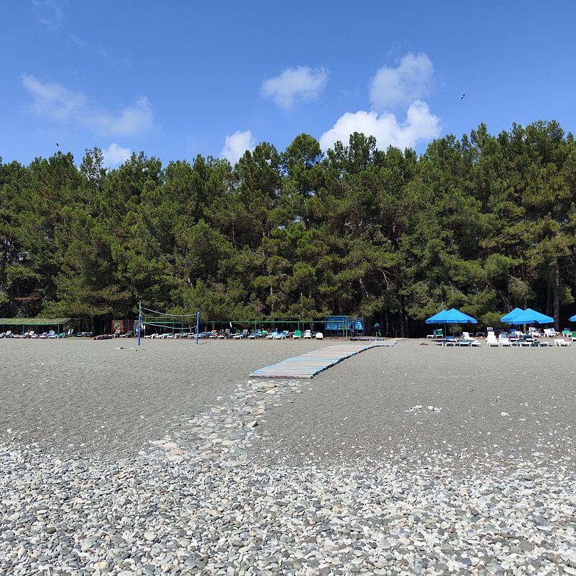 Тип пляжа: галечный, оборудованныйРасположение: в пешей доступностиГости могут воспользоваться оборудованными пляжами пансионатов Литфонд и Питиус, вход свободный.
