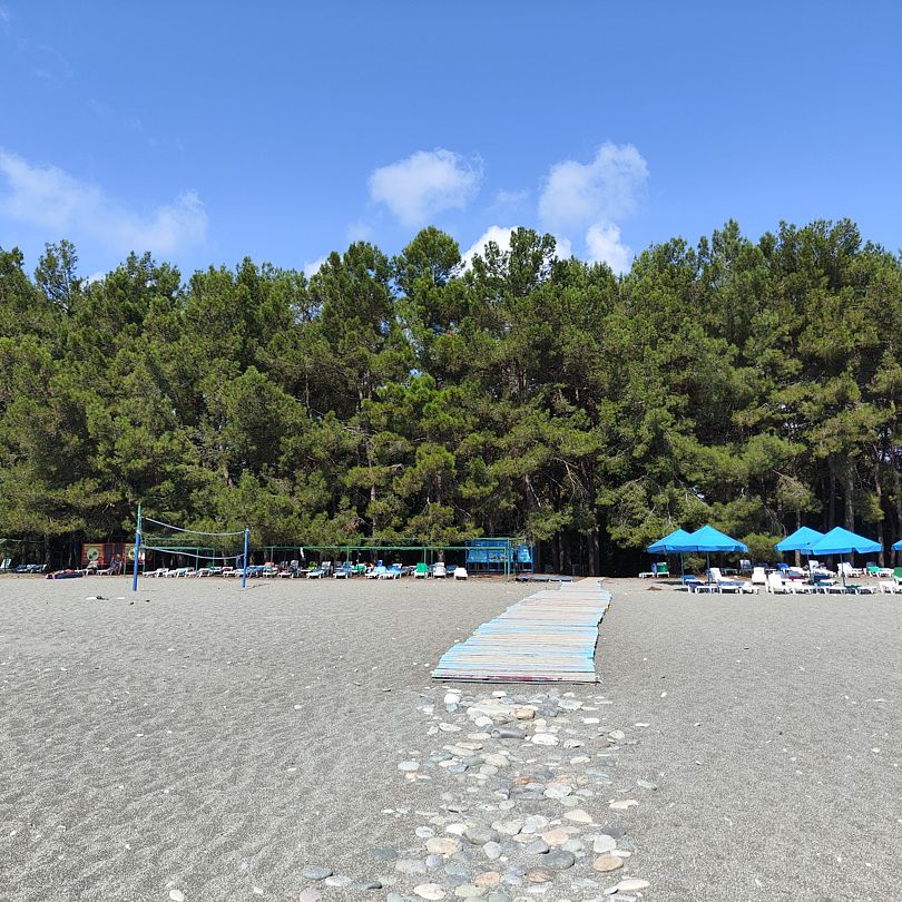 Гости могут воспользоваться оборудованными пляжами пансионатов Литфонд и Питиус, вход свободный.