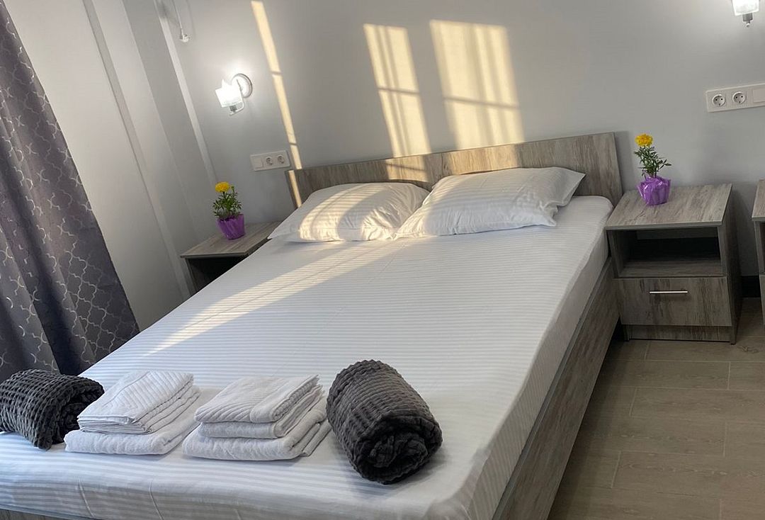 До городского пляжа всего 4 минуты пешком. Галечный пляж оборудован, работают пункт проката пляжных принадлежностей и морские аттракционы.