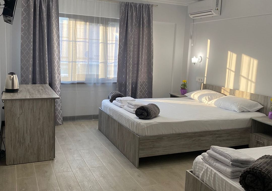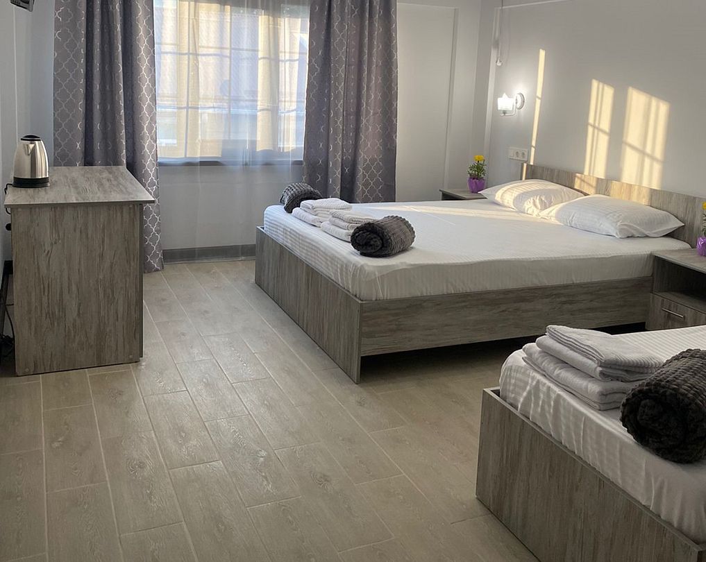 Отель представляет собой один 4-этажный корпус. Для размещения предлагаются однокомнатные 2-3 местные номера, полностью благоустроенные и укомплектованные необходимой мебелью и техникой. В каждом номере есть сплит-система, ТВ, чайник, ванная комната с душем. В свободном доступе Wi-Fi.