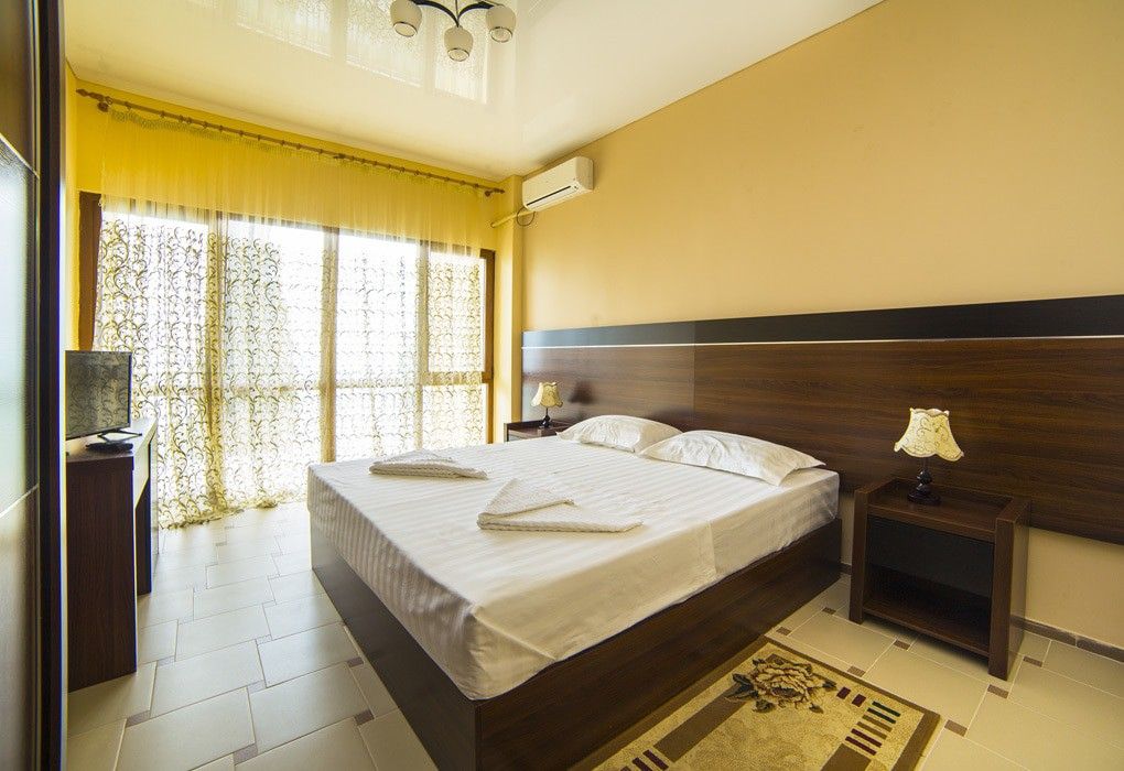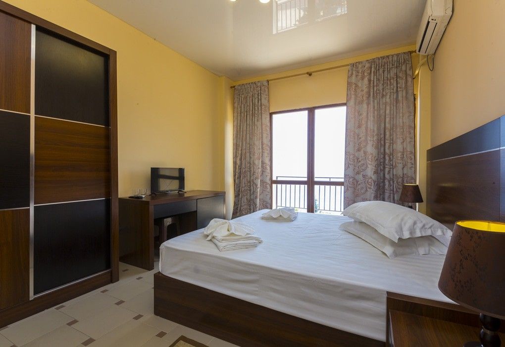 Пансионат имеет два корпуса: 9-этажный (Главный), построенный в 2009 году и новый 5-х этажный (Новый) с живописным видом на море. Гости размещаются в комфортабельных двухместных номерах категорий «Полулюкс» и «Стандарт». С балконов открывается потрясающая панорама моря и Кавказских гор. В номерах – санузлы с душем, холодильники, телевизоры и кондиционеры.