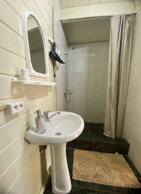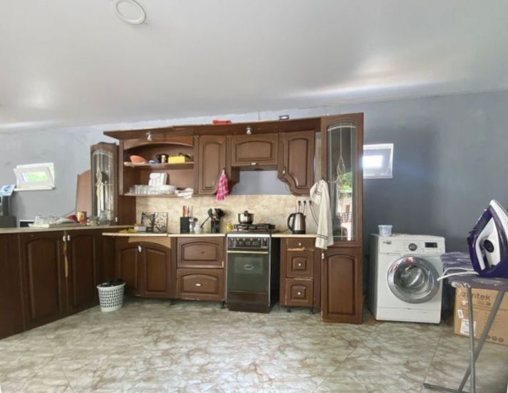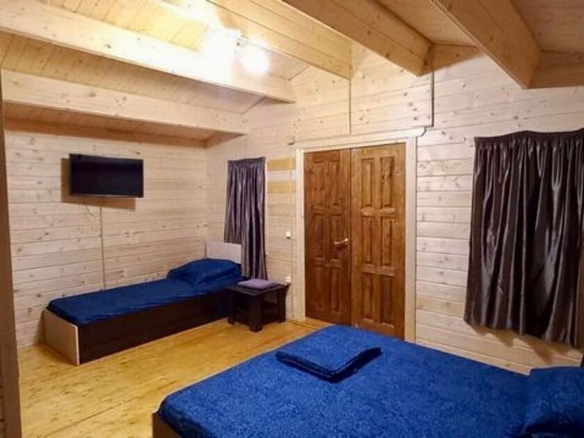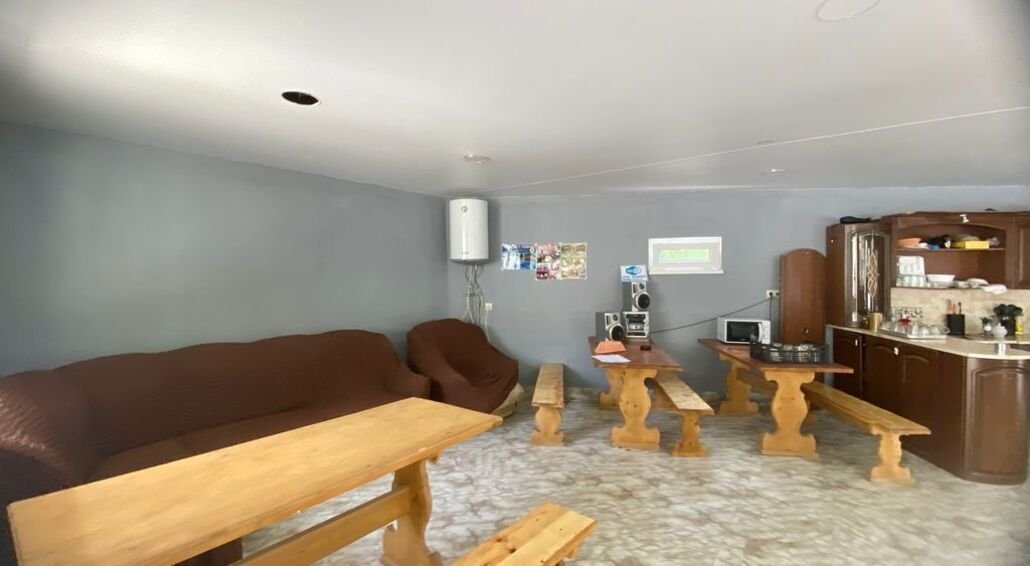 На территории расположено одиннадцать домов и общая просторная кухня-гостиная со всем необходимым для комфортного отдыха. В кухне-гостиной: микроволновая печь, стиральная машина, утюг, гладильная доска, чайник.