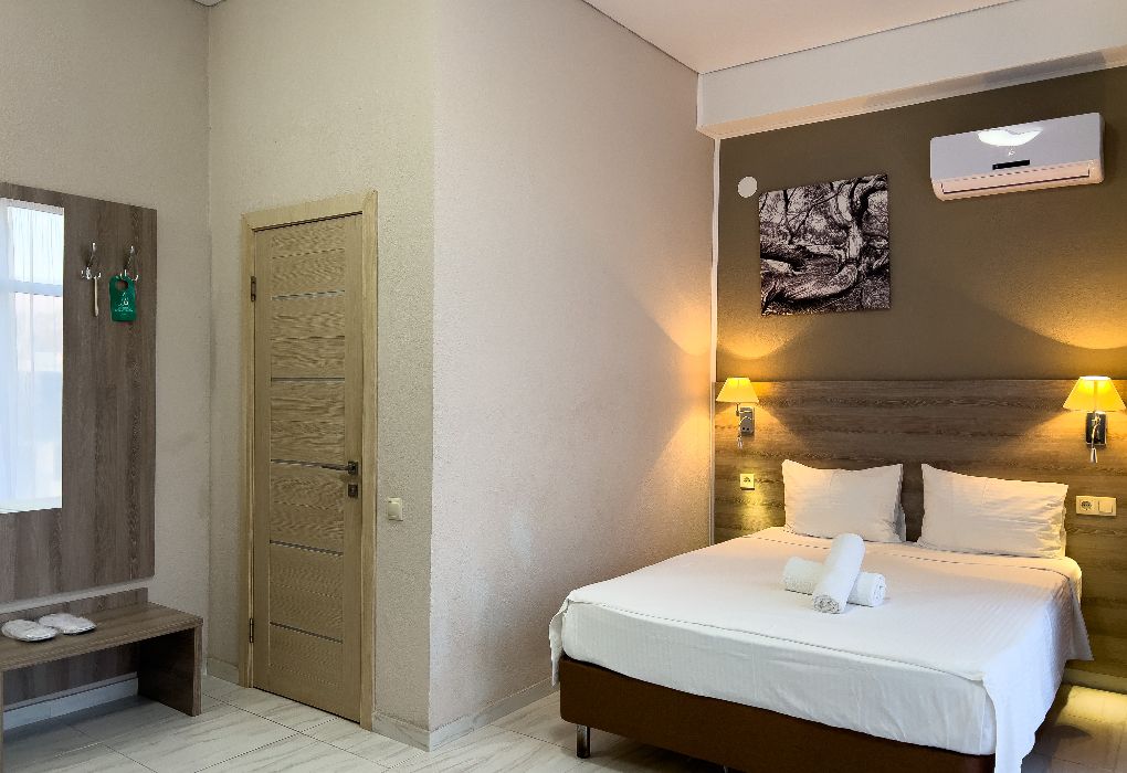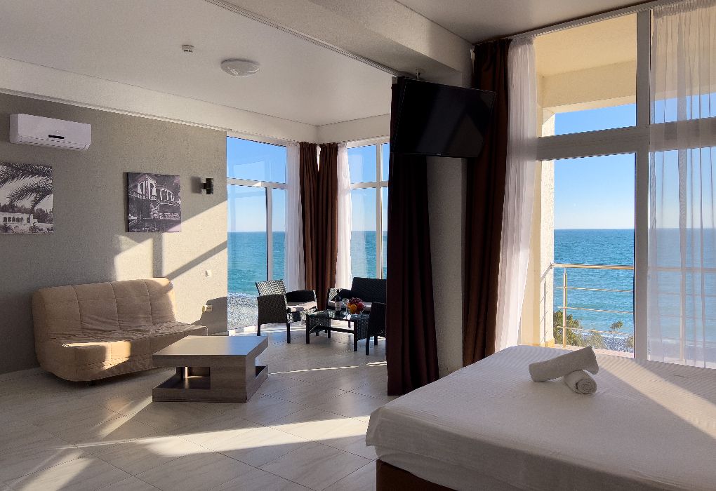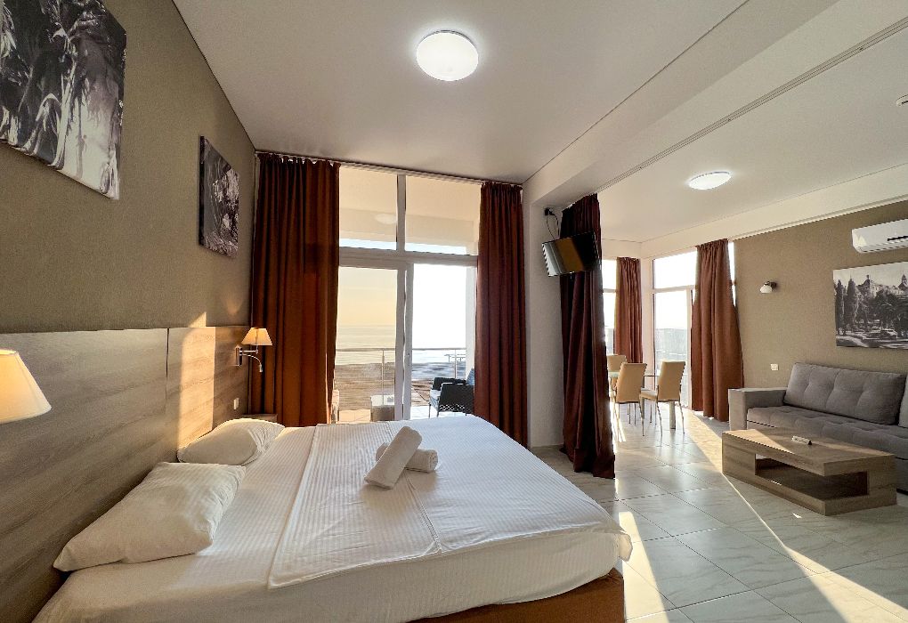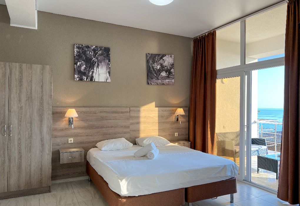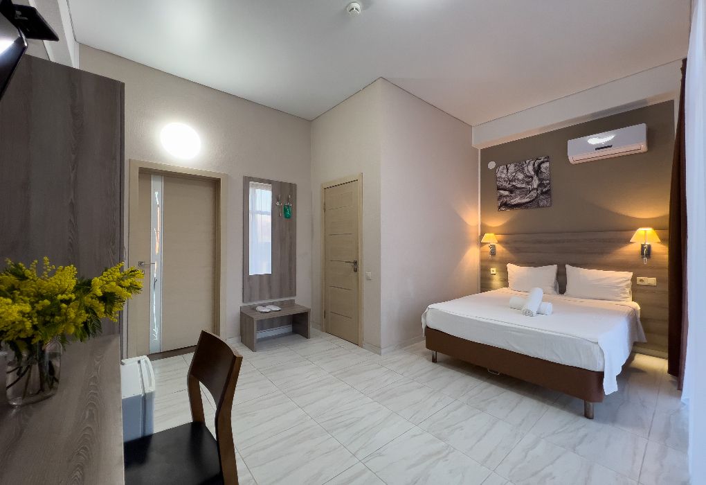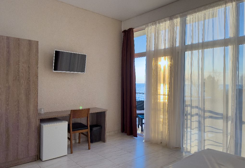 Территория гостиницы – в 30 метрах от Черного моря. Построено двухэтажное здание в 2016 году. В номерах установлены двуспальные кровати kingsize с ортопедическими матрасами, есть мягкая мебель, вместительные шкафы, кондиционеры, телевизоры и мини-бары. Обеспечивается бесплатный выход в Интернет. В распоряжении гостей – багажное отделение и охраняемая автостоянка. Доступны услуги стирки и глажки.