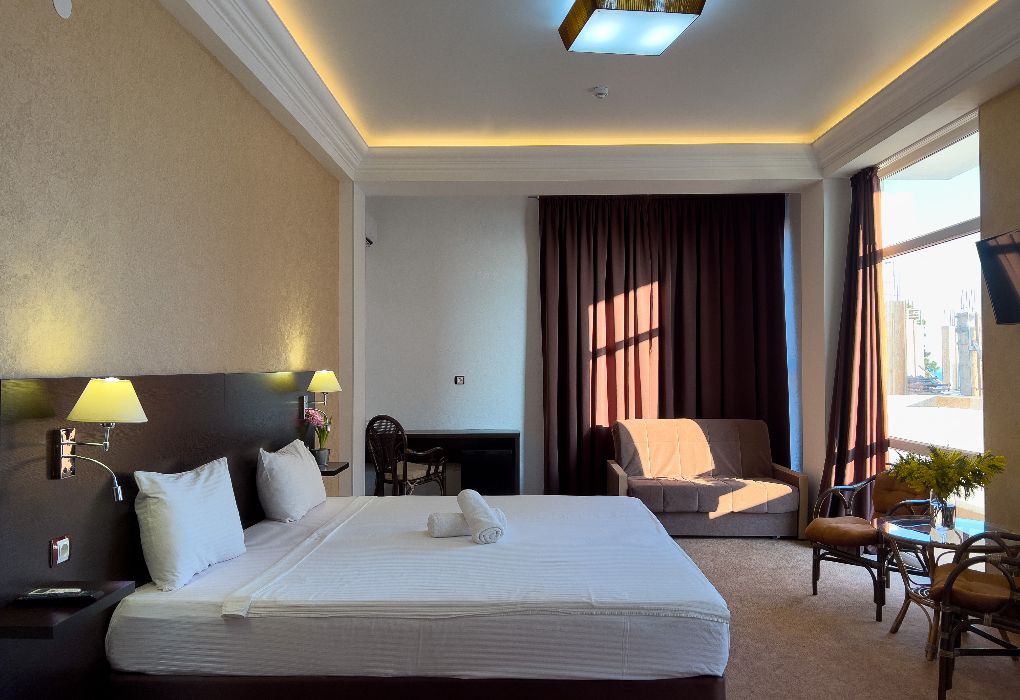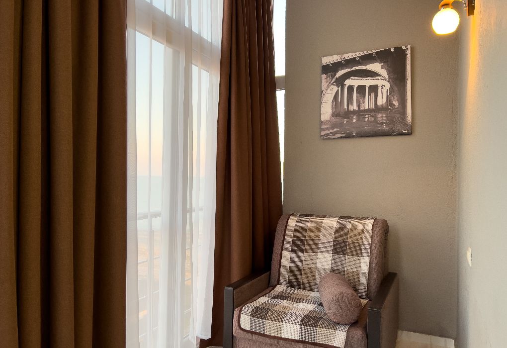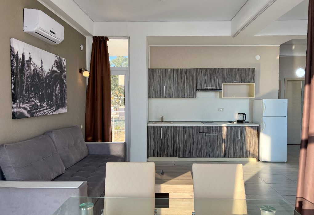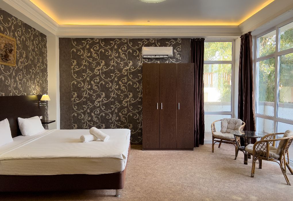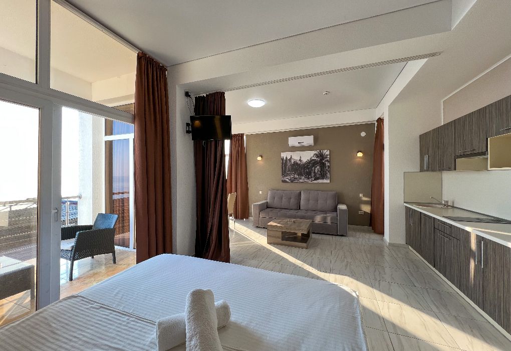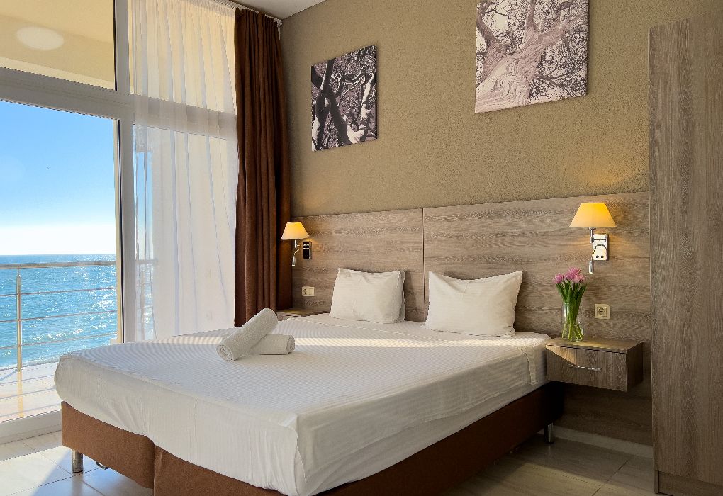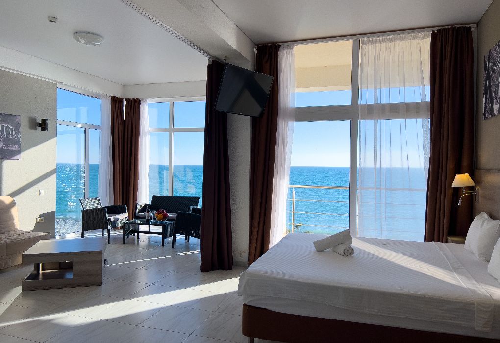 Территория гостиницы – в 30 метрах от Черного моря. Построено двухэтажное здание в 2016 году. В номерах установлены двуспальные кровати kingsize с ортопедическими матрасами, есть мягкая мебель, вместительные шкафы, кондиционеры, телевизоры и мини-бары. Обеспечивается бесплатный выход в Интернет. В распоряжении гостей – багажное отделение и охраняемая автостоянка. Доступны услуги стирки и глажки.