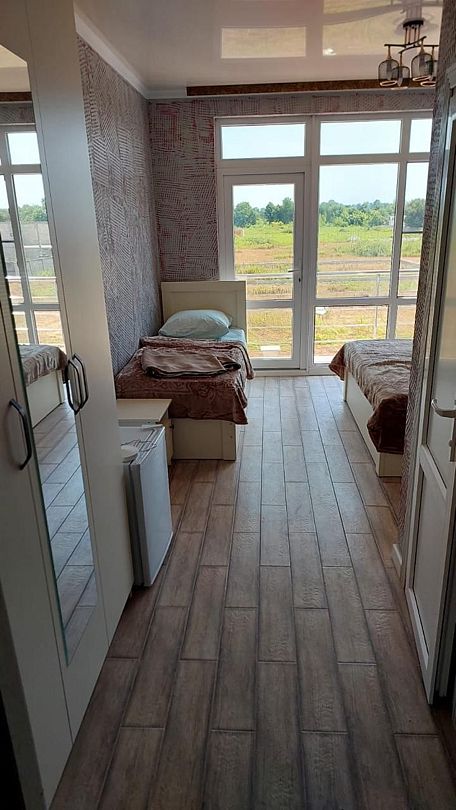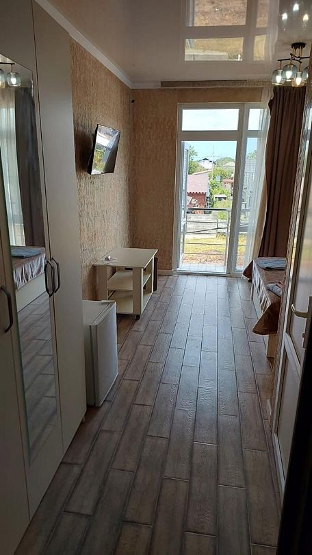 Трехэтажный корпус гостевого дома разместился на небольшой территории в 800 метрах от моря. В распоряжении гостей 2-х и 3-х местные номера с удобствами. В каждом номере имеется санузел с душем и туалетными принадлежностями, в комнатах установлена сплит-система, есть телевизор и мини-холодильник. На этажах гостевого дома есть гладильная доска, утюг, а на первом этаже – стиральная машинка.