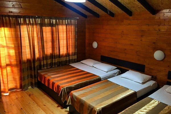 Евро-коттеджи базы отдыха построены из экологически чистых материалов, поэтому в них не душно, не жарко и не сыро. Это лучшее решение для летнего размещения в южном регионе: традиционные абхазские дома тоже всегда строились из бруса. А современные удобства – дополнительный аргумент для летнего отдыха всей семьей. В номерах есть кондиционеры, холодильники, телевизоры, комфортабельные санузлы с душем.