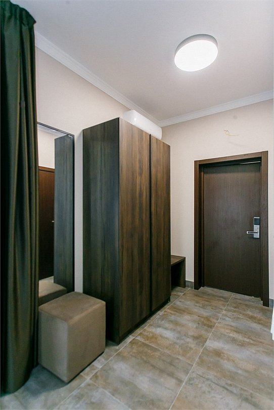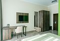 Элегантный номер площадью 18 кв.м выполнен в современном стиле с высокими потолками и панорамными окнами от пола до потолка. Пространство оснащено всем необходимым для комфортного проживания: просторная кровать Queen size, телевизор со Smart TV, кондиционер и система климат-контроля.Услуги и удобства