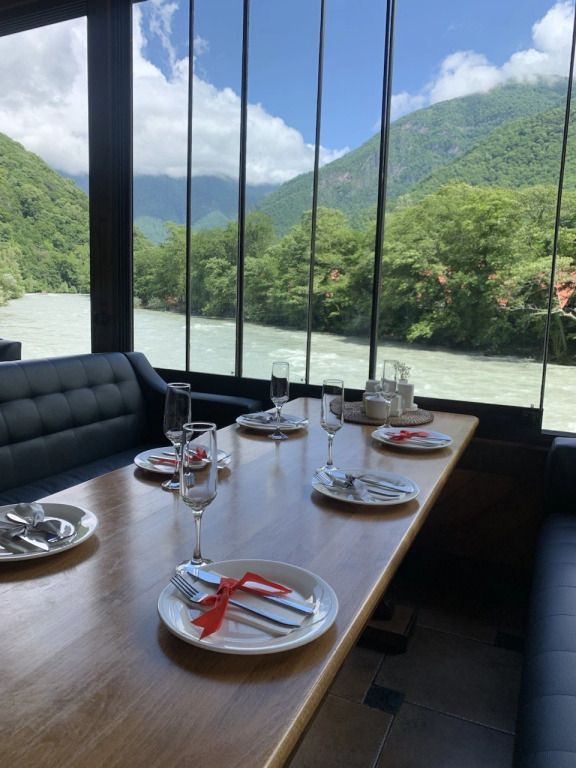 К любому блюду прилагается уютная атмосфера и стильный дизайн, а также великолепный вид на горы.
