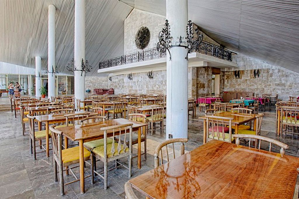 Питание клиентов осуществляется 3 раза в день, комплексно, в гостиничной столовой. Кроме нее работает кафе-бар.