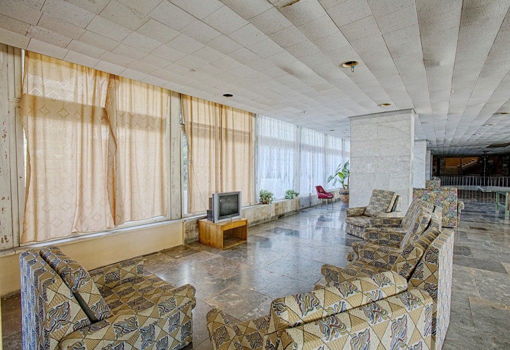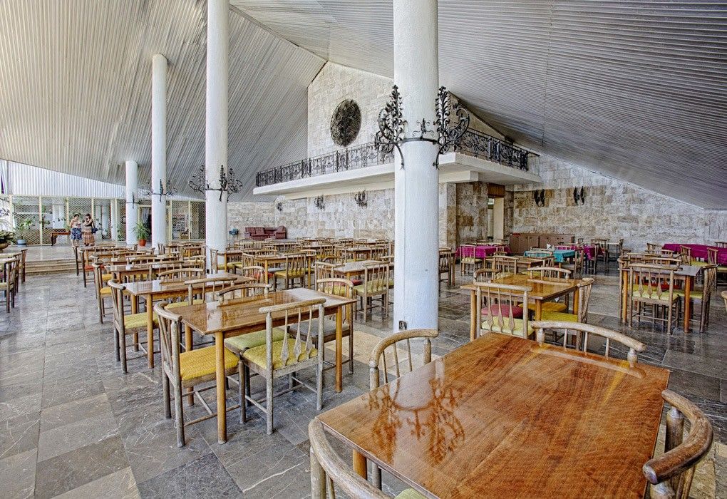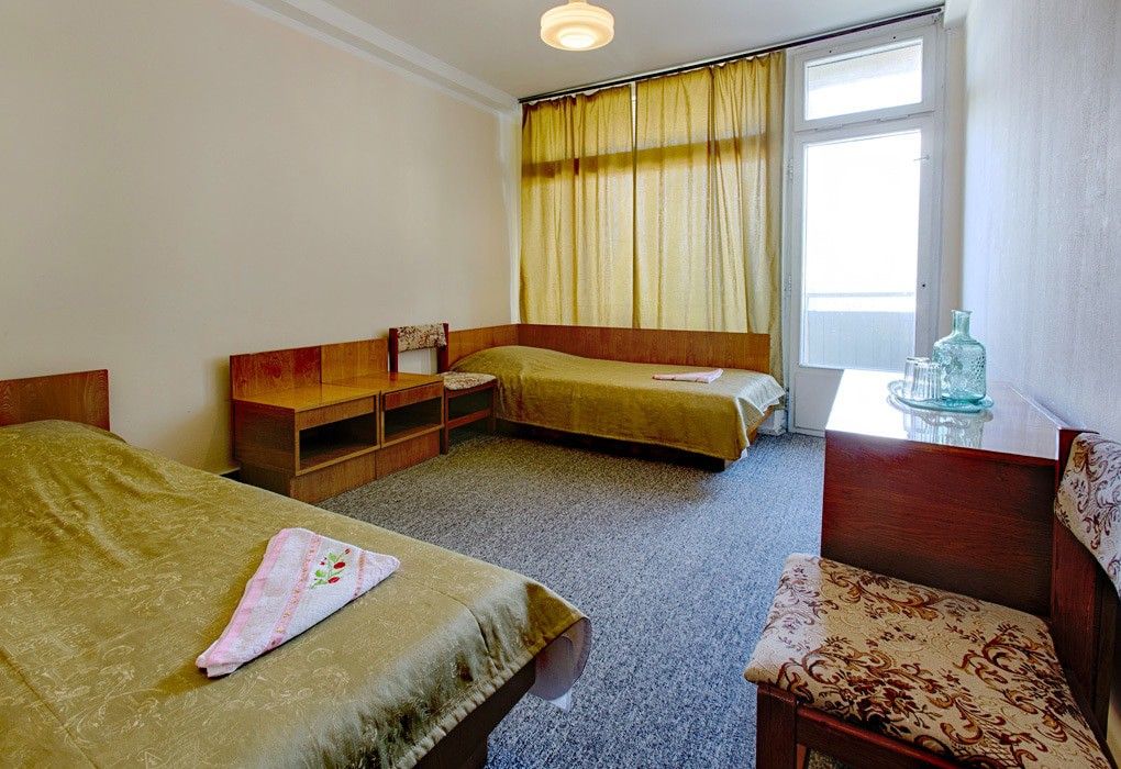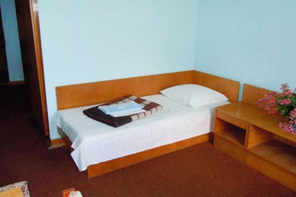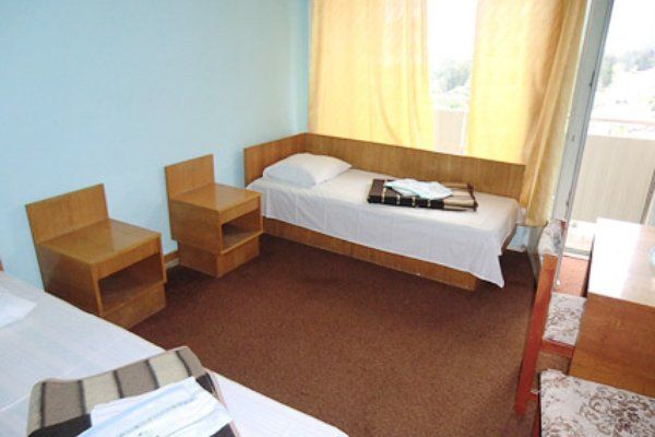 Десятиэтажное ступенчатое здание отеля видно издалека: его необычная конструкция дает возможность великолепного обзора морских далей с каждого этажа гостиницы. Все номера жилого фонда обеспечены санузлами с душем и кондиционером. Телевизоры и холодильники есть в холлах, по одному на несколько номеров.