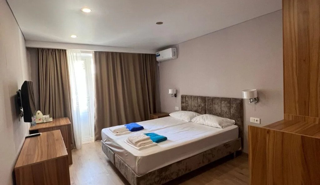 Отельный комплекс, расположенный на первой береговой линии, состоит из нескольких жилых корпусов рваной этажности. Главный шестиэтажный корпус возвышается на первой береговой линии. Гостей ждут двух- и трехместные номера, и двухкомнатные Люксы. Все номера оснащены собственным санузлом, кондиционером, телевизором и холодильником.