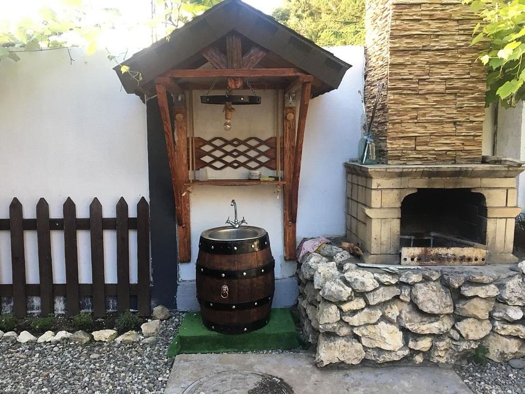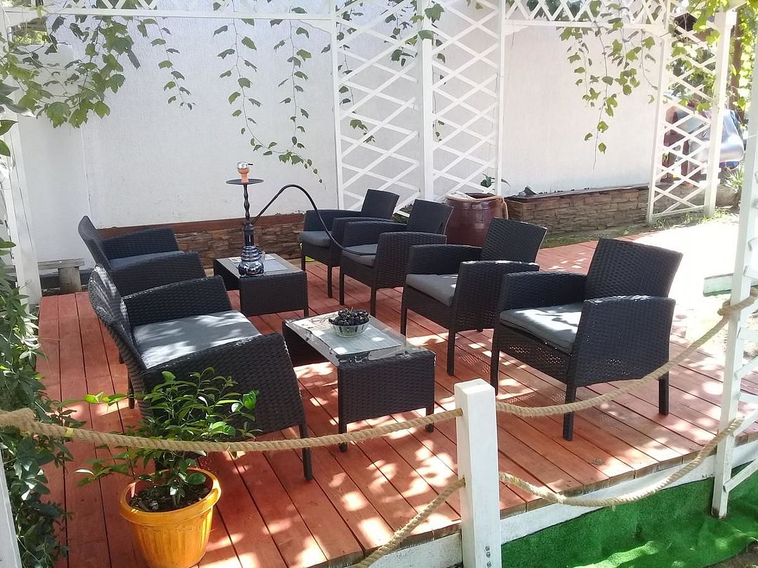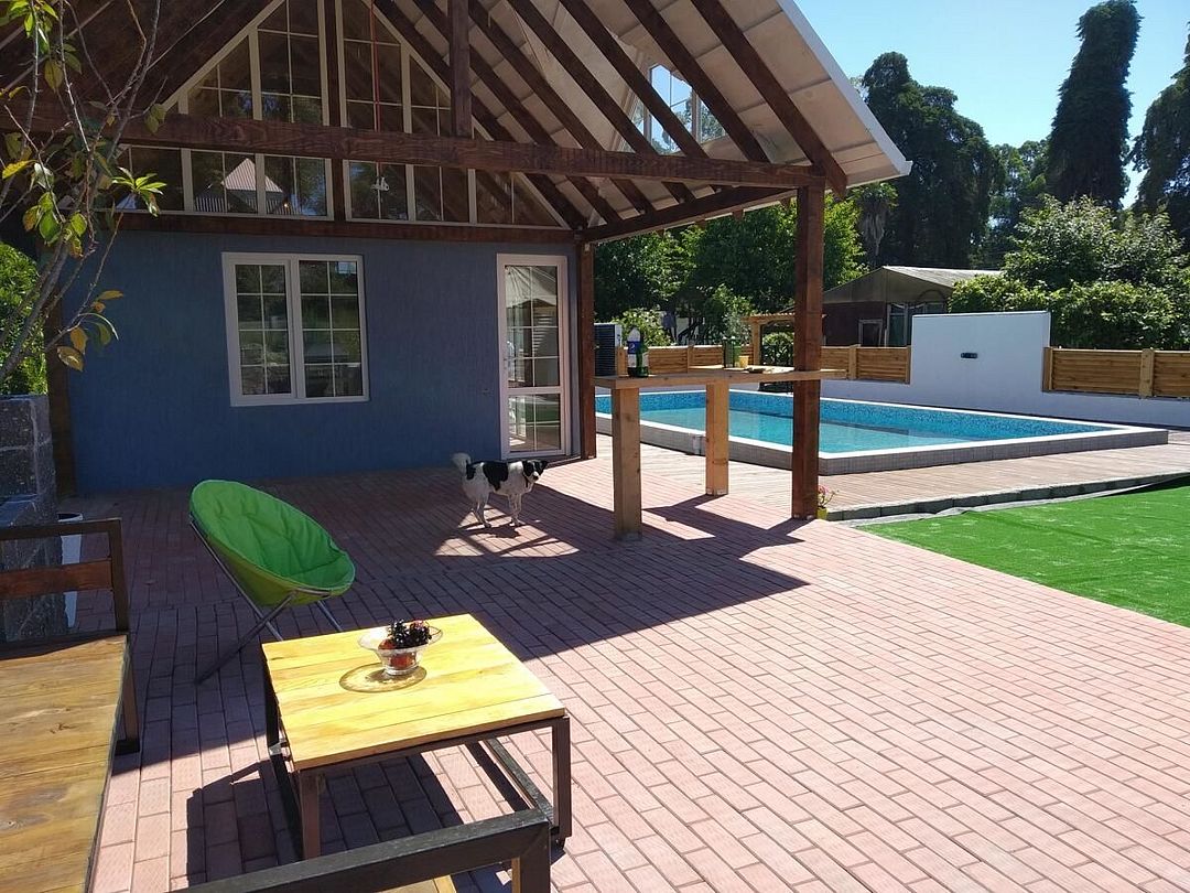 На территории организована кухня-столовая, есть пространство для барбекю с мангалом. В распоряжении гостей открытый бассейн, рядом с которым — зона отдыха со стильными навесами. Среди услуг — сеть wi-fi, для отдыхающих на машинах предусмотрена охраняемая открытая парковка, также в гостевом доме допускается размещение с домашними питомцами. Юные гости могут провести время на игровой площадке. Всего в 5 минутах ходьбы находится песчано-галечный пляж.