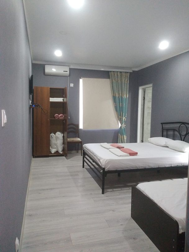 Корпус гостевого дома разместился на ухоженной закрытой территории с современным дизайном. Гостей ожидают 15 комфортабельных номеров, в каждом из которых есть санузел с душем, кондиционер и телевизор. Также для размещения отдыхающие могут выбрать отдельно стоящий двухэтажный коттедж, рассчитанный на 6 человек.