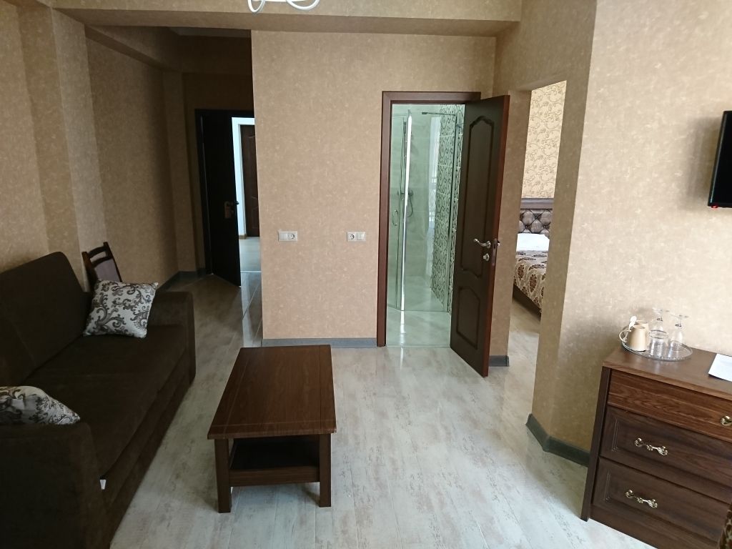Из минусов: слишком хорошая слышимость с улицы. если приезжают чрезмерно активные компании, у которых нет личных границ и они в 11 вечера располагаются с кальяном, пивом и музыкой во дворе, и прекрасно проводят время - ты слышишь в номере каждый разговор и каждый бит. (но спасибо администраторам, они решили этот вопрос)