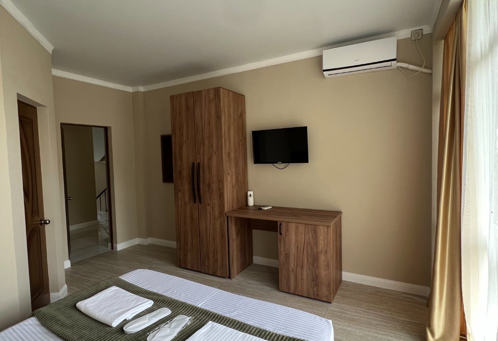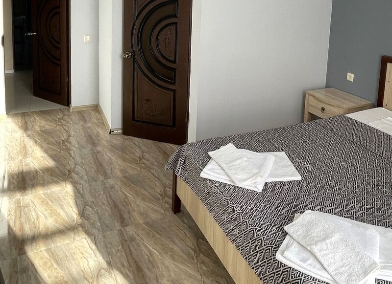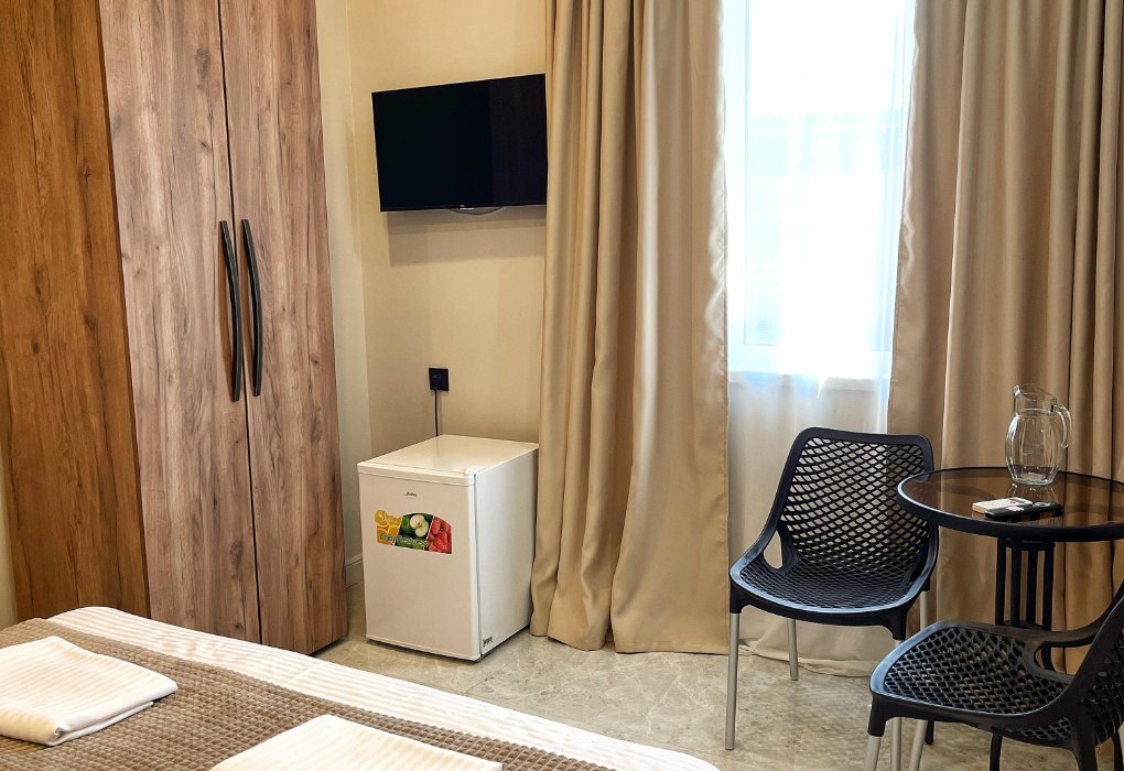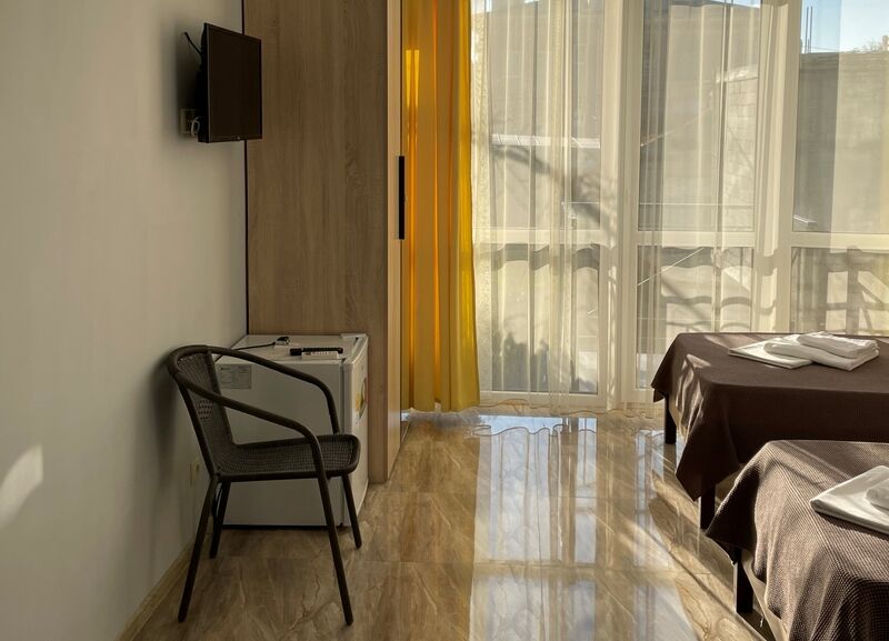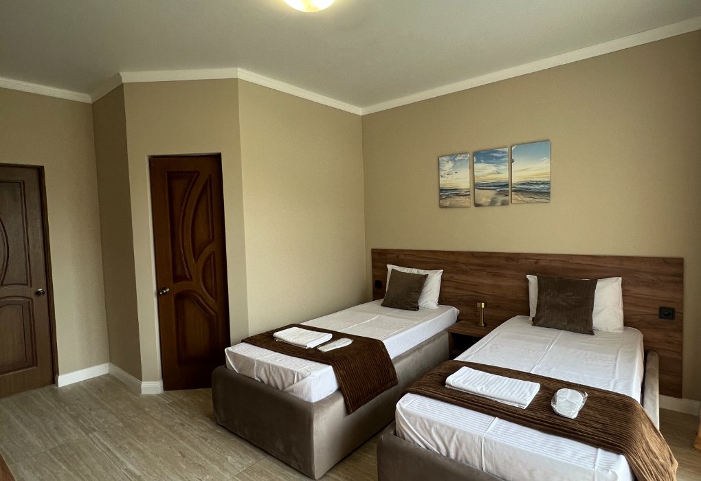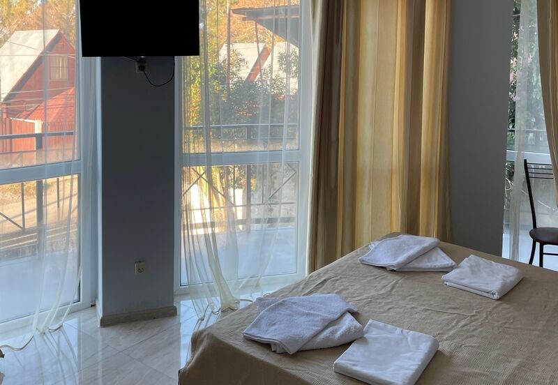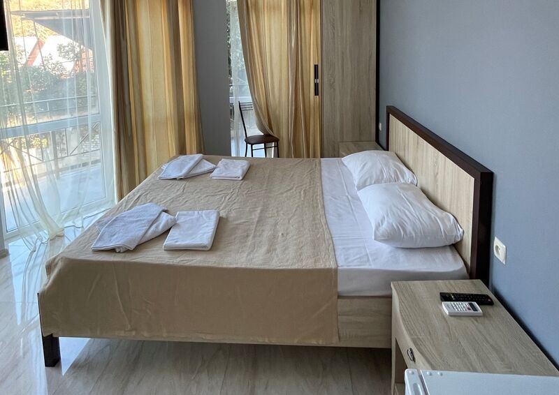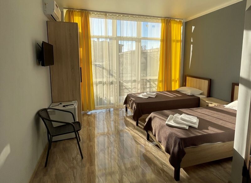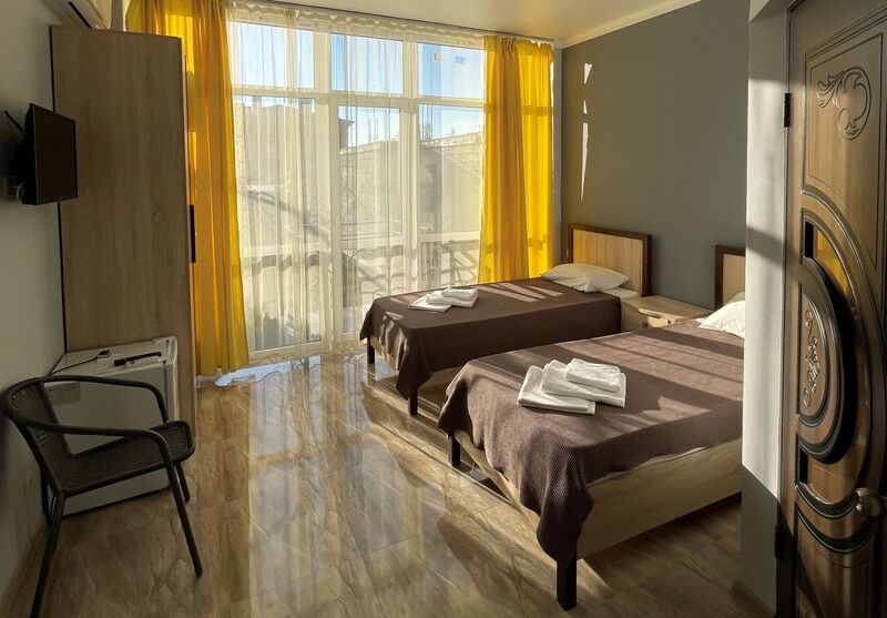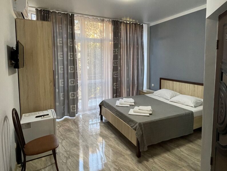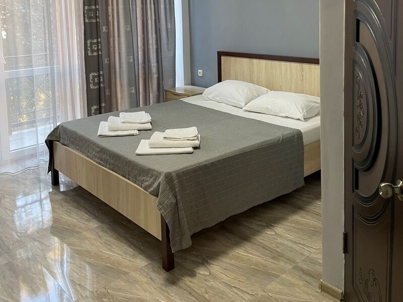К услугам гостей один 4-этажный корпус отеля с выбором номеров от стандарта до люкса. Просторные светлые номера оборудованы удобной мебелью, отдельными санузлами, телевизором и холодильником. В числе удобств для отдыхающих - летняя кухня для самостоятельного приготовления пищи, мангальная зона, парковка, беспроводоной интернет Wi-fi.