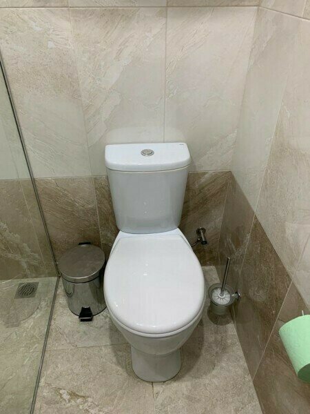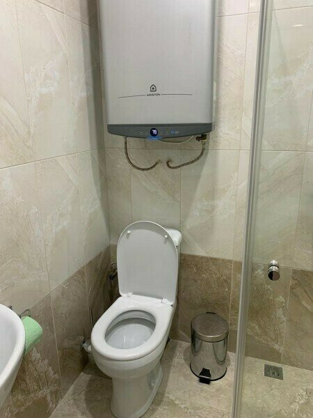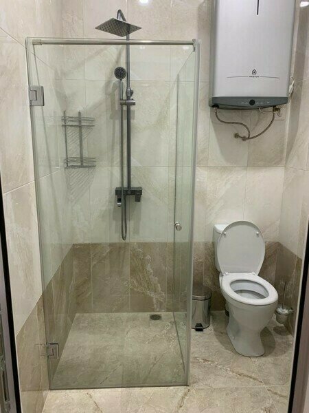 Индивидуальная ванная комната: душ, раковина, туалет.