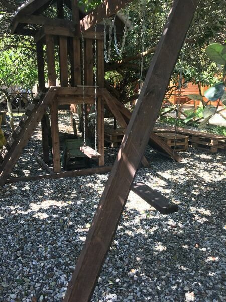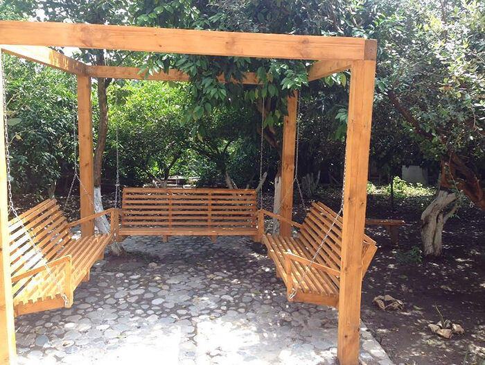 В распоряжении отдыхающих – комфортабельные зоны отдыха со скамьями-качелями, беседками, мангалом, садовыми гамаками и шезлонгами, инвентарь для настольного тенниса и детская игровая площадка на свежем воздухе.
