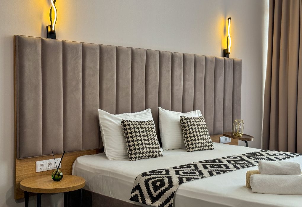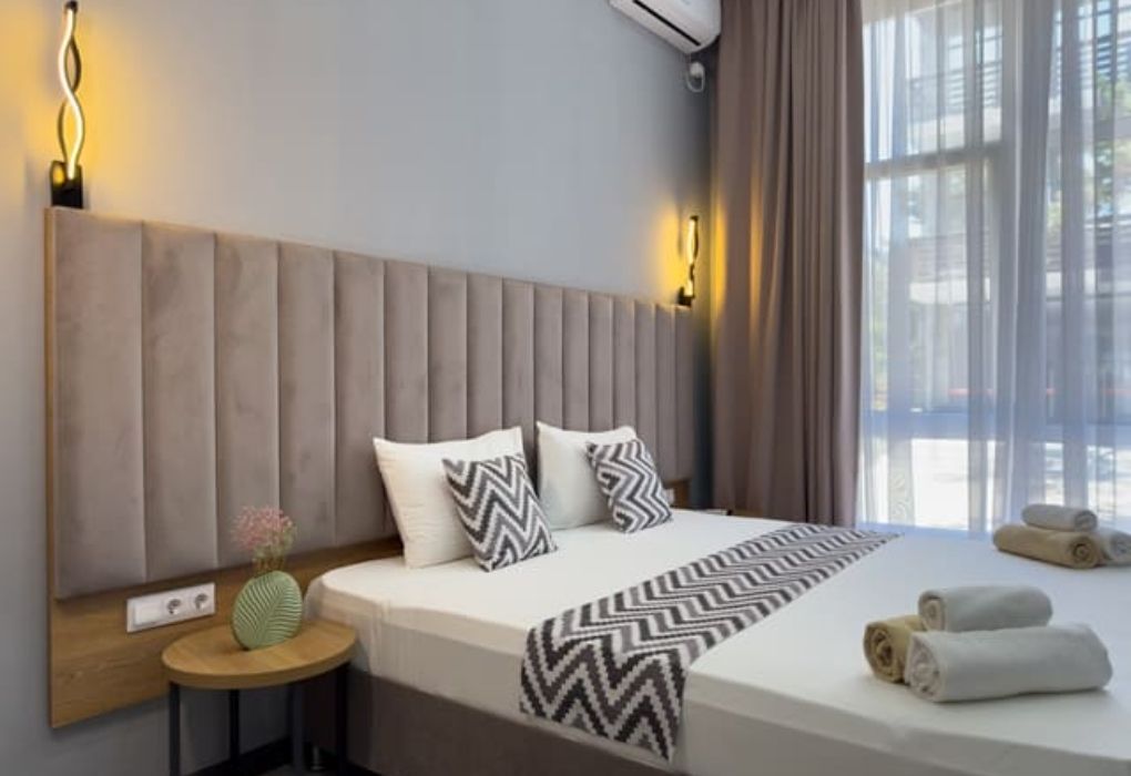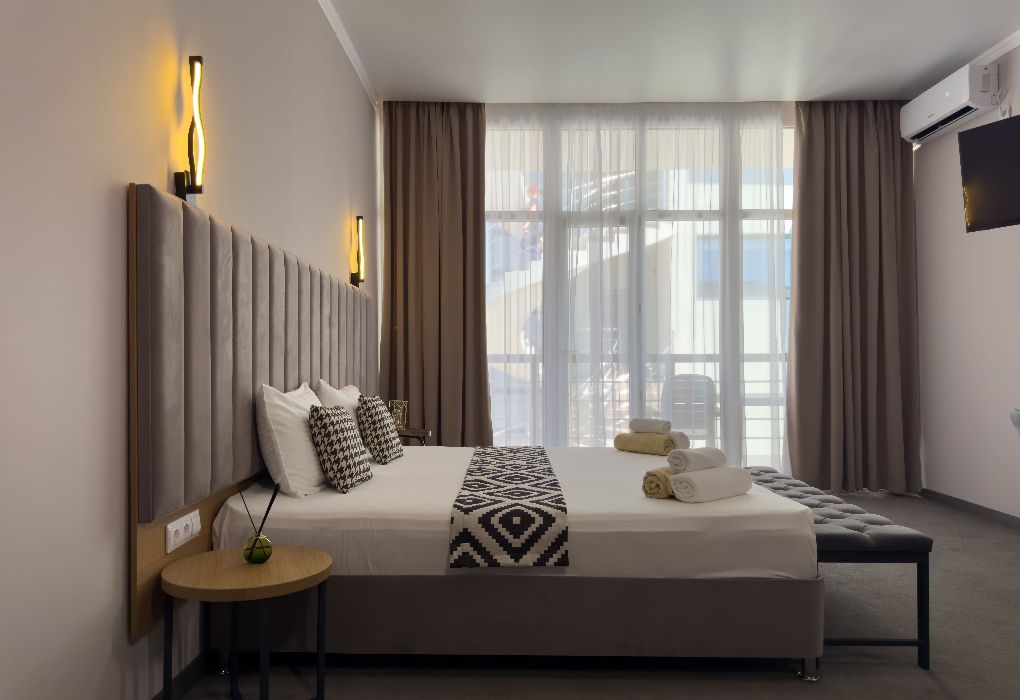 Отель представляет собой современное двухэтажное здание, символизирующее морской лайнер, бороздящий просторы водной стихии, перемещаясь с континента на континент. На данный момент имеется 13 комфортных номеров, позволяющих гостям путешествовать из страны в страну. Все номера спроектированы и оформлены со вкусом. Здесь сочетание натуральных материалов и соответствующей цветовой гаммы холодных и теплых тонов сочетается с использованием текстиля из натуральных волокон для обеспечения тепла и комфорта. Номера окружены панорамными окнами с балконами, откуда открывается прямой или боковой вид на море и горы, оттуда вы можете насладиться впечатляющим восходом солнца и наблюдать, как солнце медленно садится за горы.