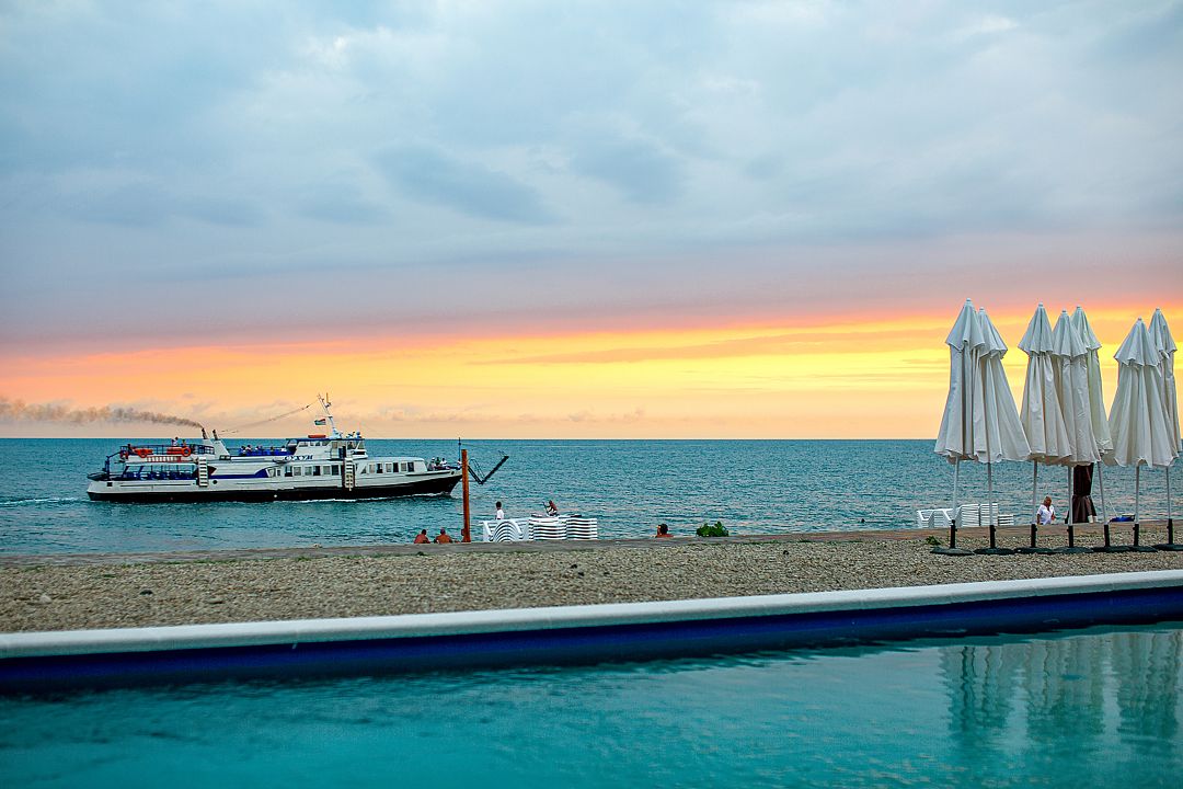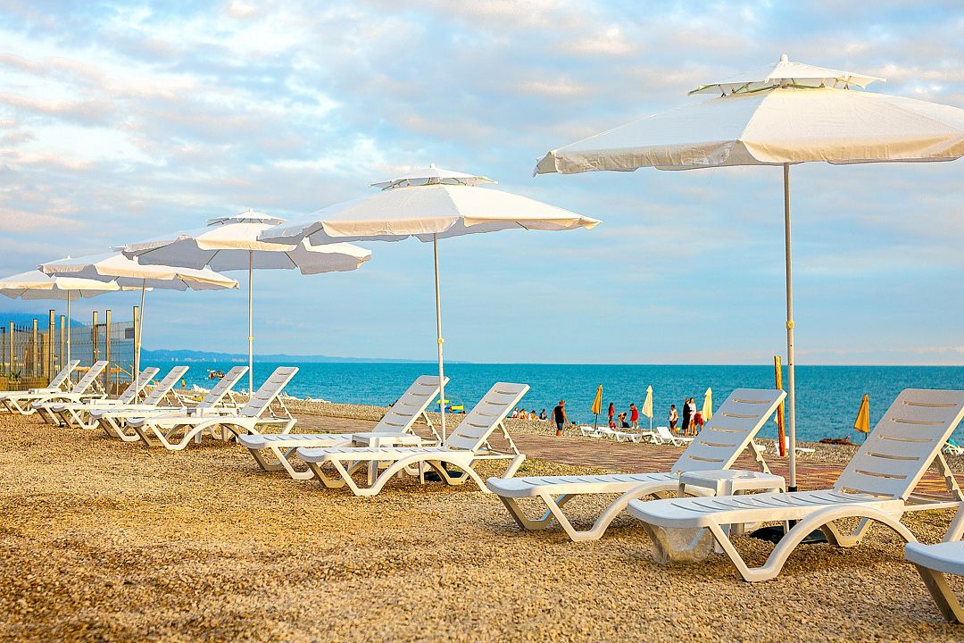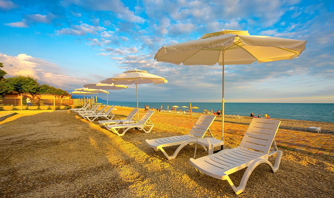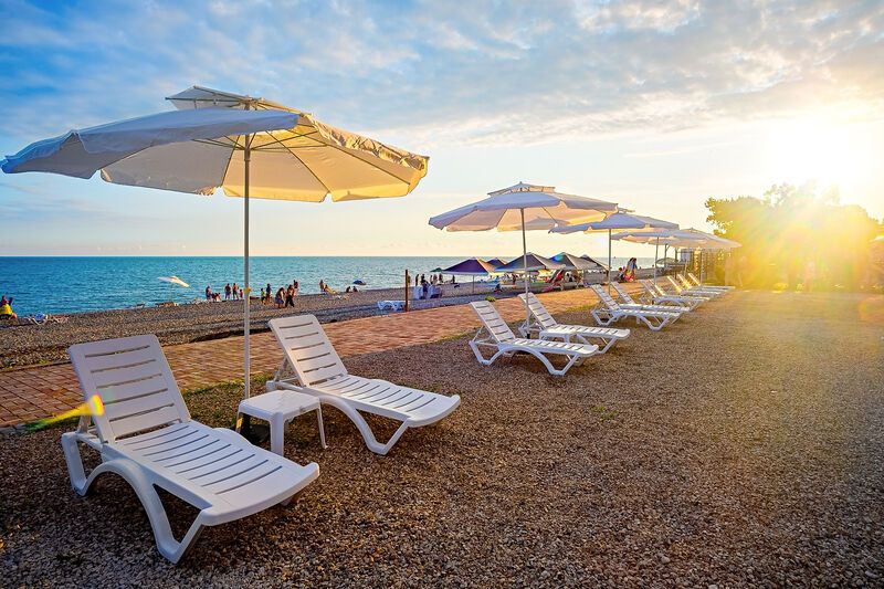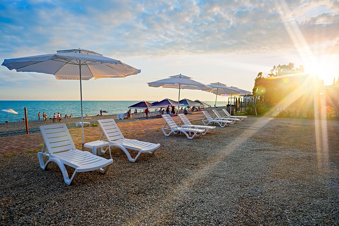 Инфраструктура: лежаки, зонтики, шезлонгиПесчано-галечный пляж