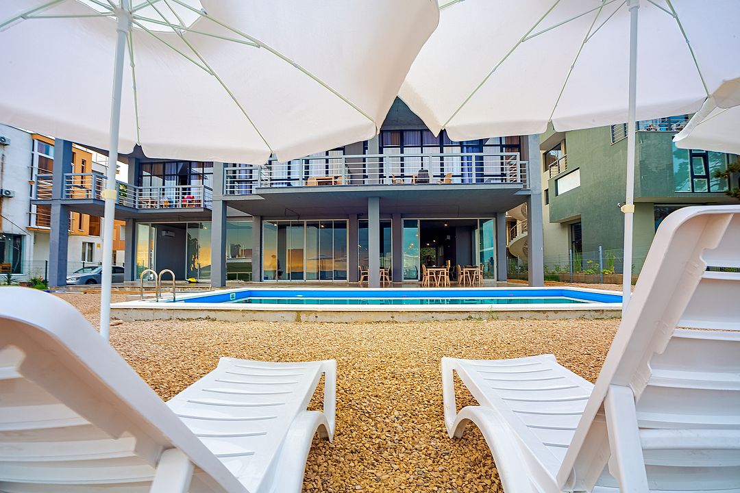 Бесплатно предоставляются услуги:- пользование открытым подогреваемым бассейном, лежаками и зонтами