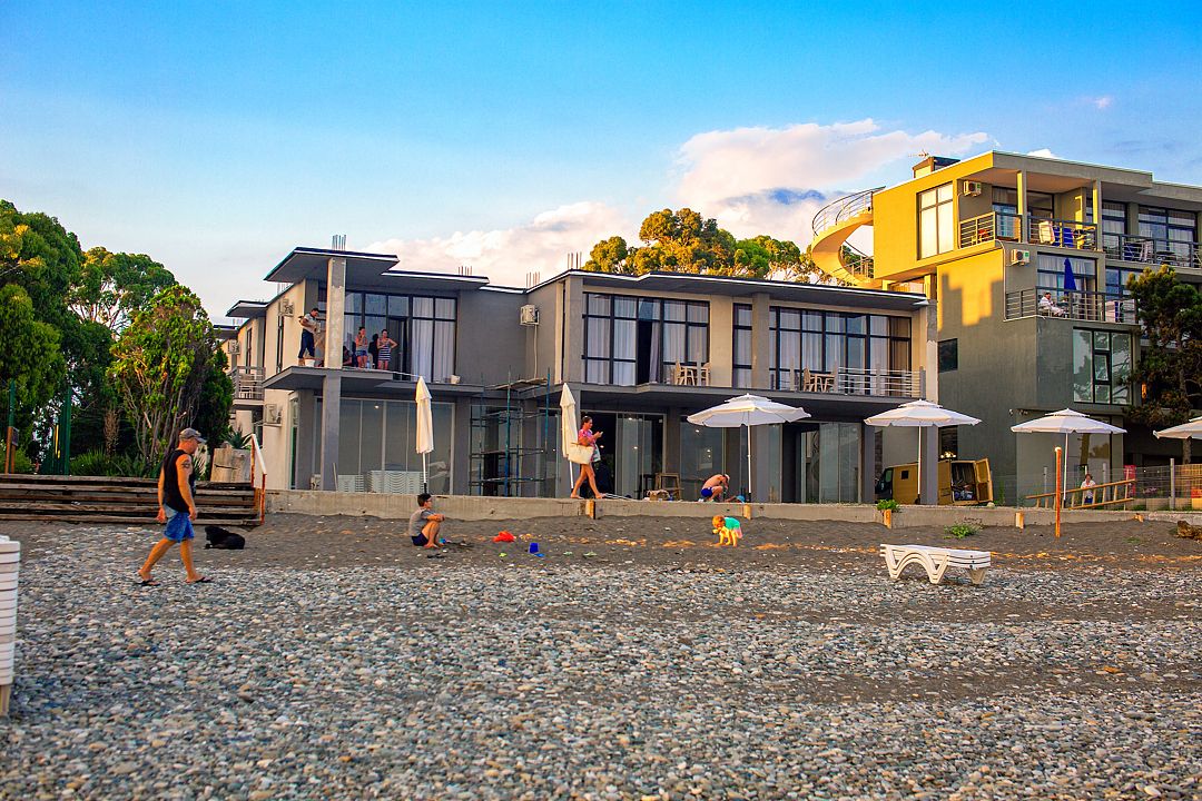 GREEN LAND HOTEL расположен на первой береговой линии курортного поселка Цандрипш, всего в 5 минутах езды от границы с Россией и в 20 минутах от аэропорта Адлера, в месте, где чистейшее море окружено столетними елями. Море и пляжи Цандрыпши считаются одними из лучших на побережье Абхазии. Вода здесь чистая и очень прозрачная, а в море нет волнорезов и бетонных сооружений, что делает его привлекательным и безопасным.