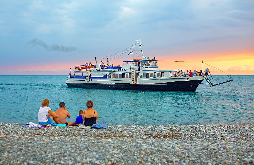 Поездом или самолетом - до Сочи (Адлера), далее общественным транспортом или на такси до «Казачьего рынка» (8 км от ж/д вокзала, 15 км от аэропорта), далее пешком около 500 м до пограничного поста на Реке Псоу до границы России и Абхазии. После прохождения паспортного и таможенного контроля самостоятельно, вы можете воспользоваться услугами автобусов, маршрутных такси или частных водителей, чтобы добраться до места отдыха.