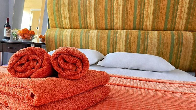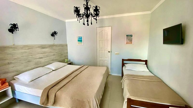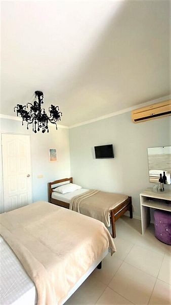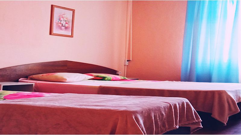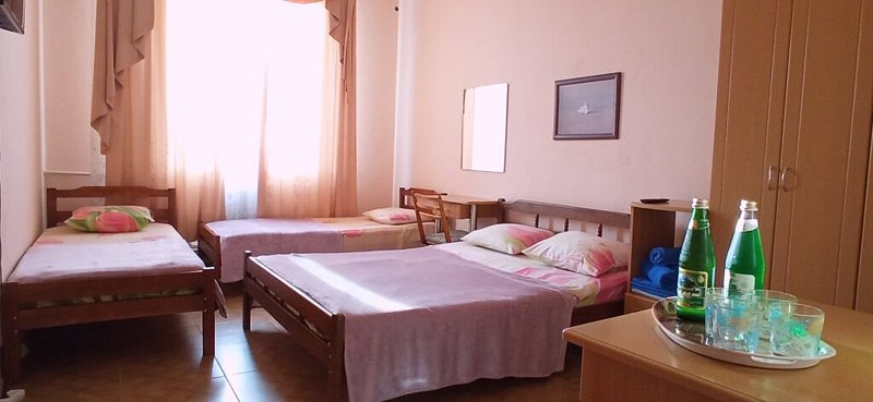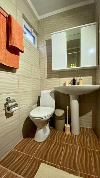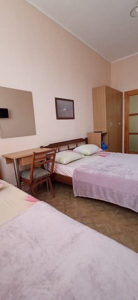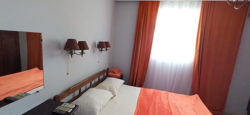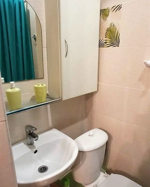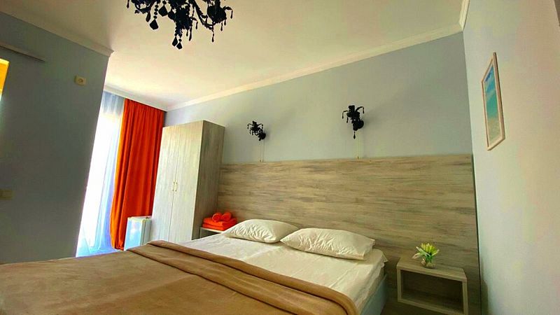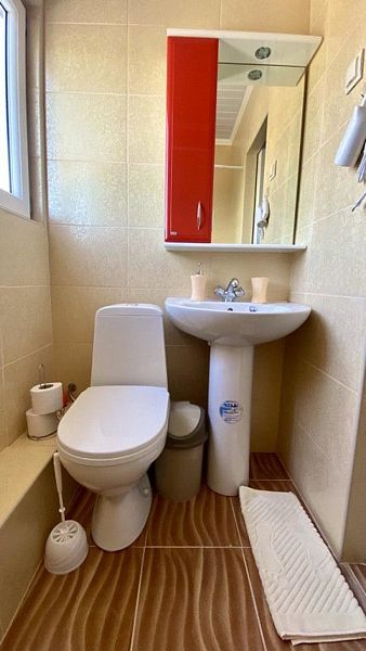 Интерьер выполнен в светлых тонах, что позволяет отдыхающим почувствовать уют в период проживания. Все комнаты оснащены необходимой мебелью и техникой. Санузел укомплектован стандартным набором сантехники. Из окон открывается живописный вид на город.