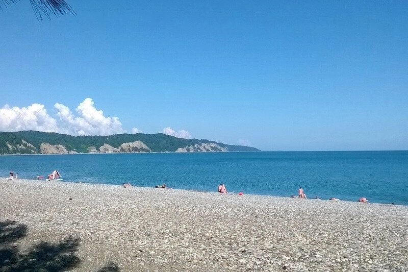Поездом или самолетом – до г. Сочи (Адлер), далее на общественном транспорте или на такси до «Казачьего рынка» (8 км от ж/д вокзала, 15 км от аэропорта), затем пройти пешком около 500 м до пограничного поста на р. Псоу до границы России и Абхазии. После самостоятельного прохождения паспортного и таможенного контроля до места отдыха можно доехать на автобусе, маршрутном такси или воспользоваться услугами частных водителей.