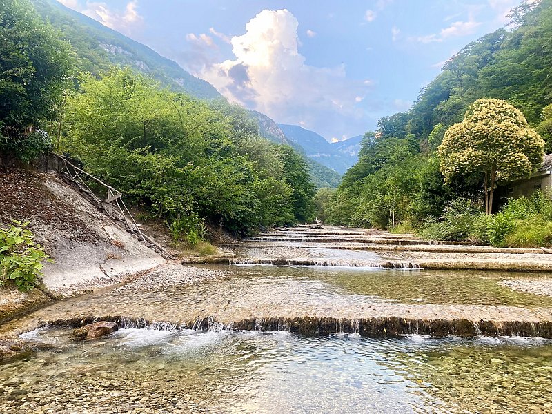 Само место идеально и тишина и горы и река . С богатой историей. До моря минут 10-15 спокойным шагом. По пути и магазины и конечная автобусов . Мне кажется идеальное сочетание.