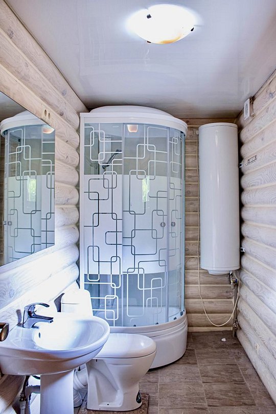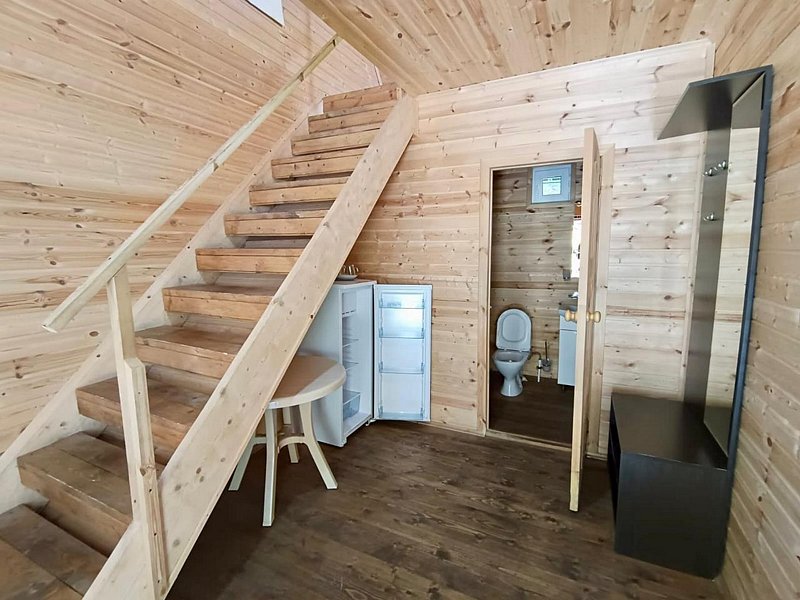 Индивидуальная ванная комната на первом этаже оборудована душем, раковиной, туалетом и феном. На втором этаже санузет с раковиной. Также в стоимость проживания входят туалетная бумага, шампунь и гель для душа.