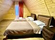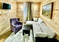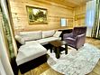 Трёхместный дом-полулюкс площадью 72 м² с живописным видом на горы и реку. В доме могут разместиться 5 человек: в наличии 3 основных места и 2 дополнительных: раскладная кровать, и дополнительное место на раскладном диване при его раскрытии.)