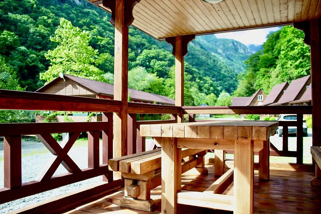 авг. 2019 г.я в восторгеДеревянный домик в тенистом ущелье с очаровательной природой у горной речки - просто замечательное расположение для полноценного отдыха после городских бетонных джунглей .