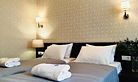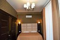 Спальни с приятным интерьером. В номере вас ждут две двуспальные кровати, три односпальные, односпальный диван в кухне-гостиной.