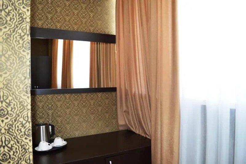 Отдельного внимания заслуживает индивидуальная ванная комната с душем, раковиной, туалетом и феном. В комплект входят необходимые банные принадлежности: шампунь и гель для душа.