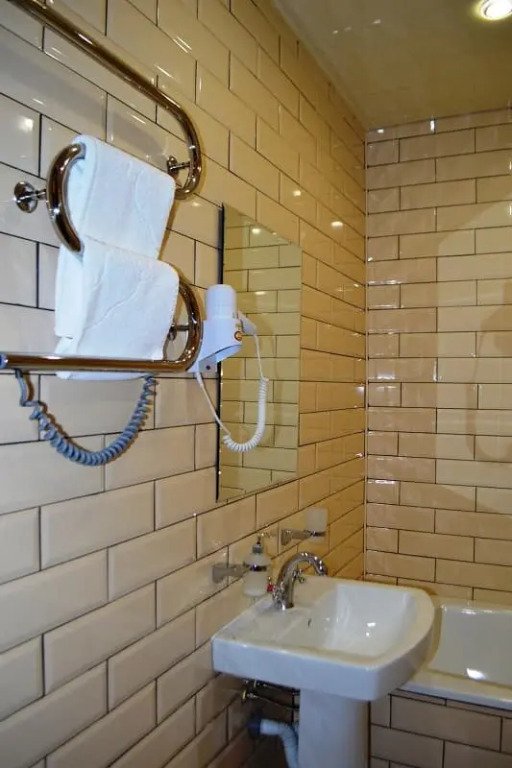 Индивидуальная ванная комната оборудована душем, раковиной, туалетом, феном и всеми необходимыми ванными принадлежностями (шампунь, гель для душа). В стоимость проживания входят постельное бельё, полотенца и мыло.