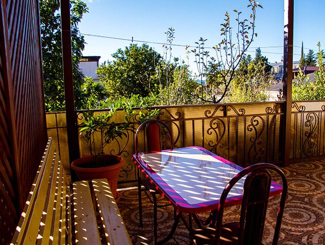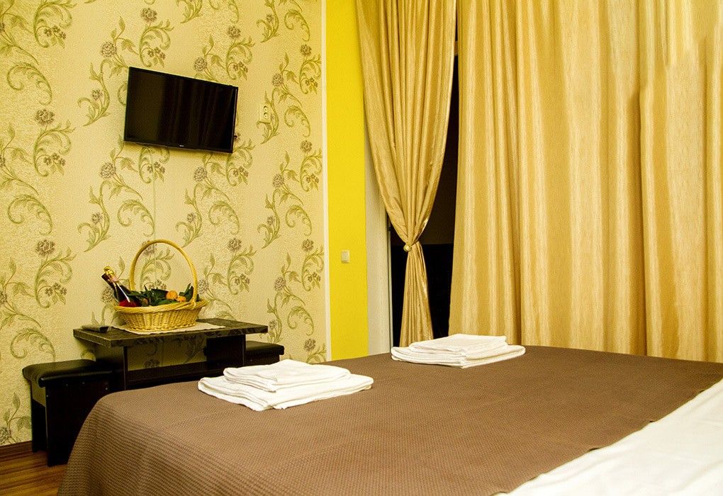 Ажурные решетки, балконы и террасы в здании отеля тоже напоминают о сочетании старины и современности. В здании четыре этажа с номерами категории «стандарт»: небольшие, но уютные. В каждом – двуспальная кровать, холодильник, телевизор и кондиционер. Сотрудники отеля поддерживают в нем идеальную чистоту и порядок.