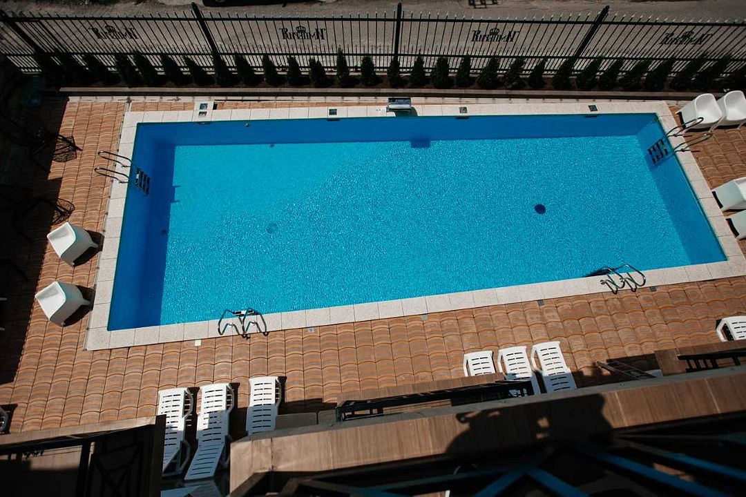 Понравился бассейн про отеле, очень чистый. Есть столики и кресла.