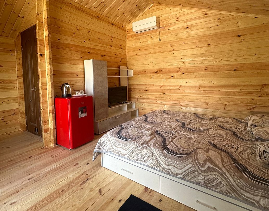 Номерной фонд составляет 6 гостевых коттеджей (эко-домиков) с персональными удобствами: кондиционер, телевизор, холодильник, чайник, душ, туалет, фен.