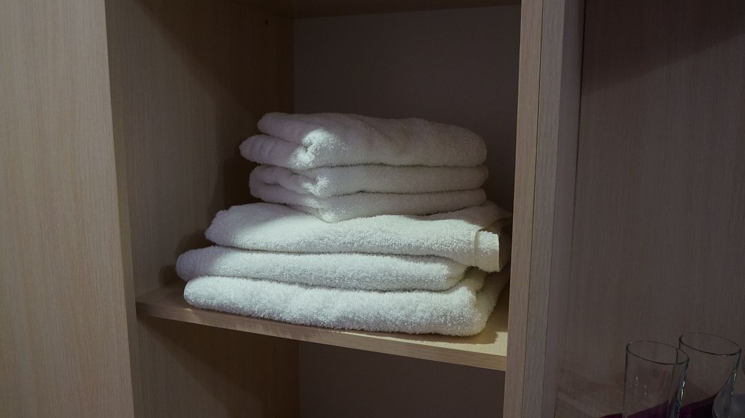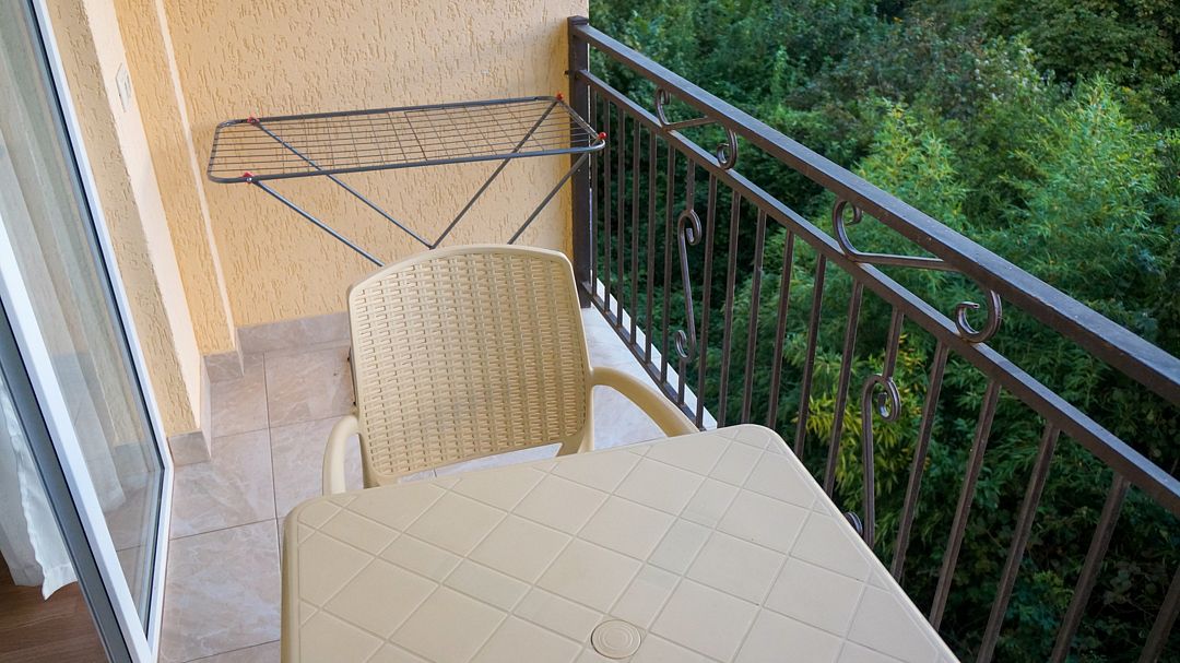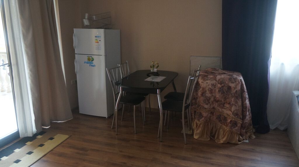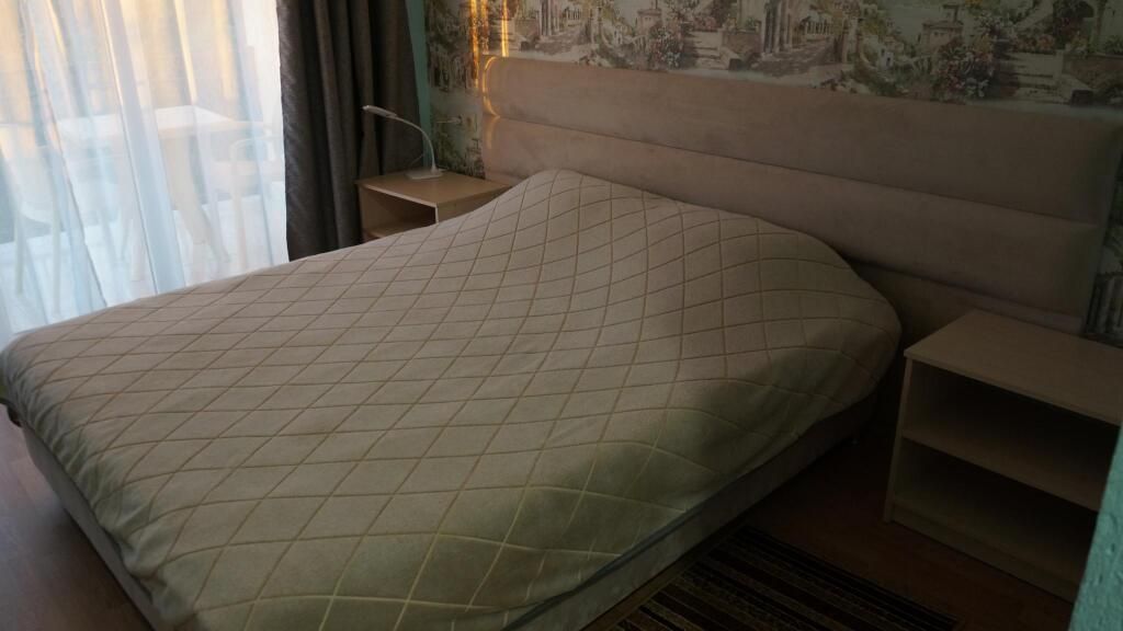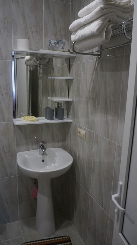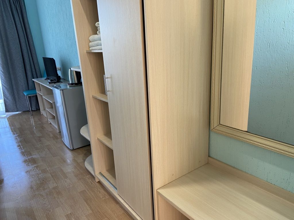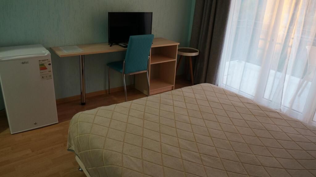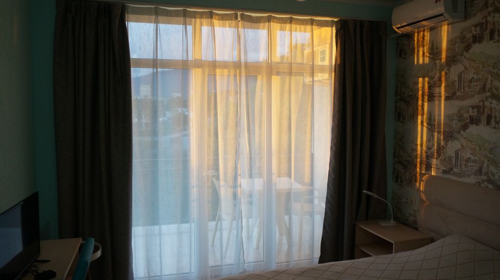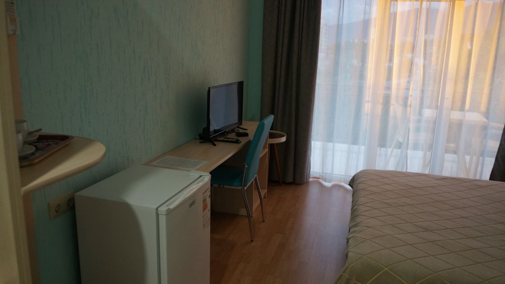 Номер располагается на четвертом этаже, окно выходит в сторону моря. В номере кабельное телевидение, кондиционер, холодильник, собственная ванная комната.В гостиничном номере