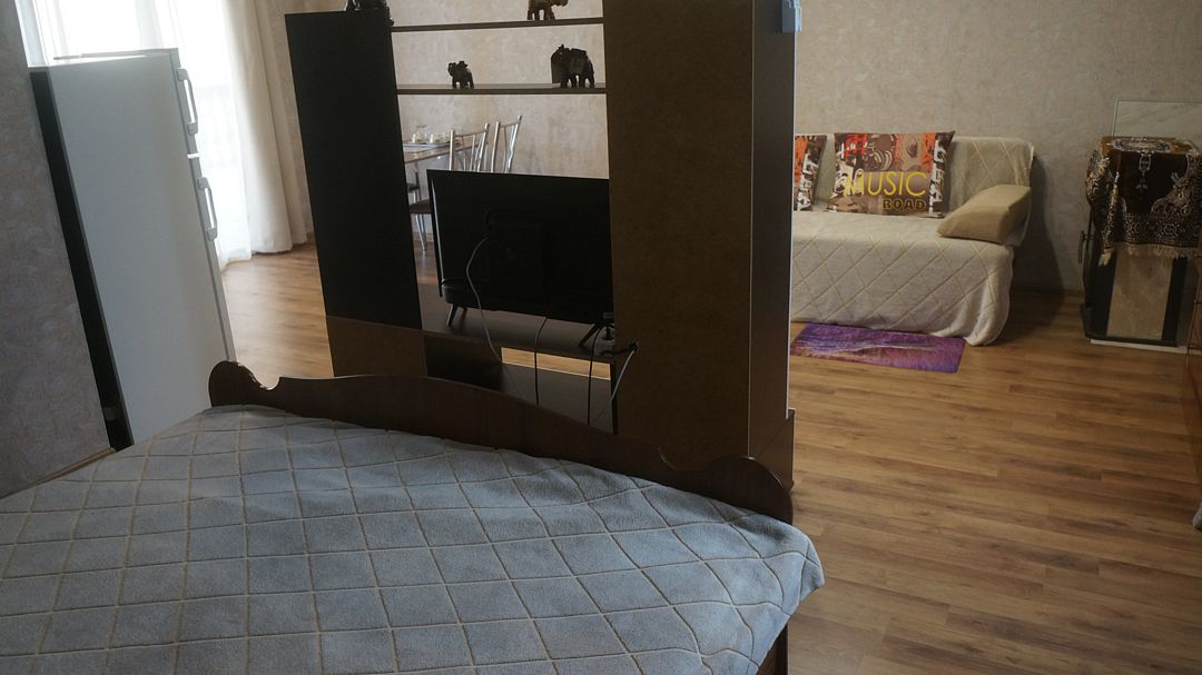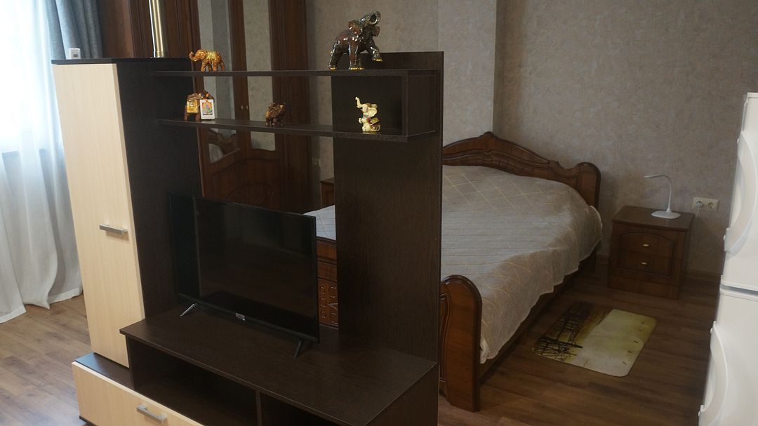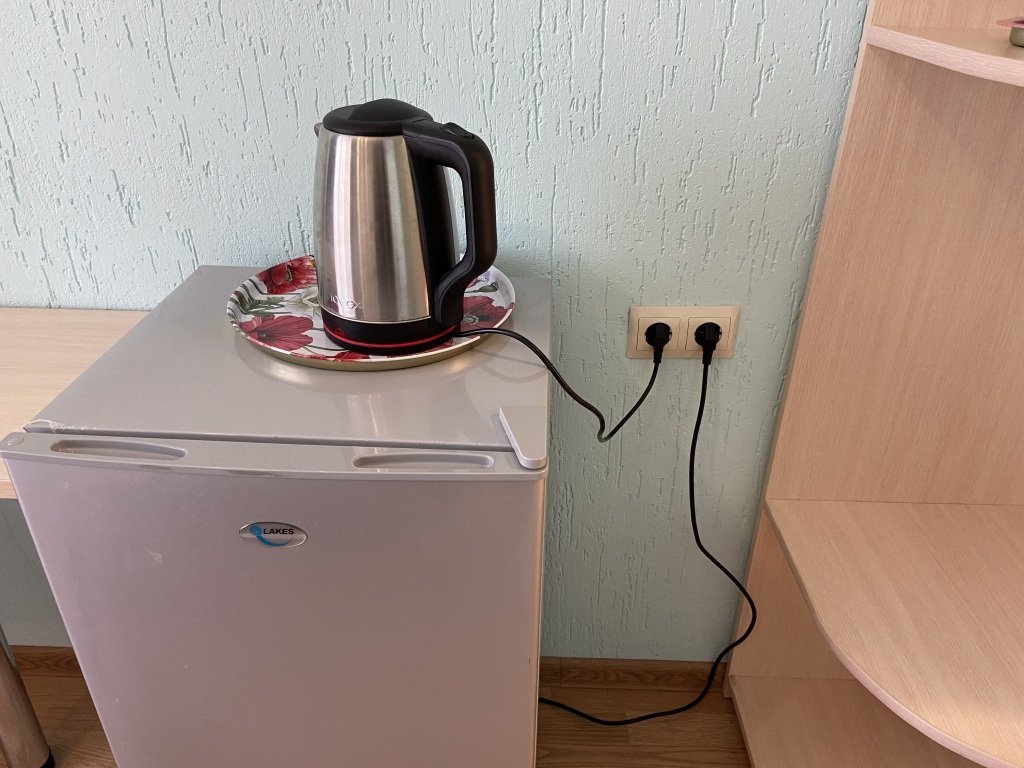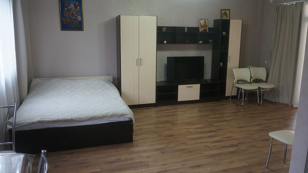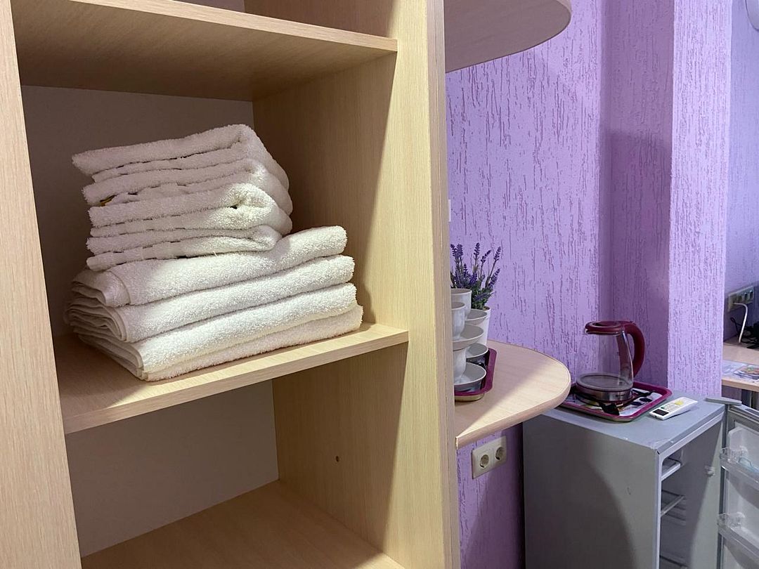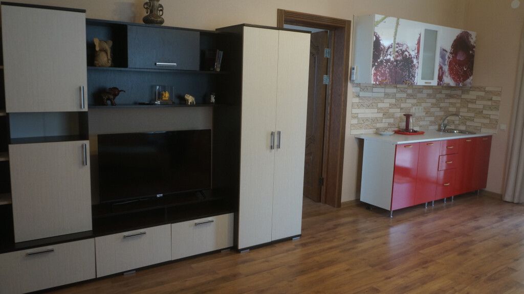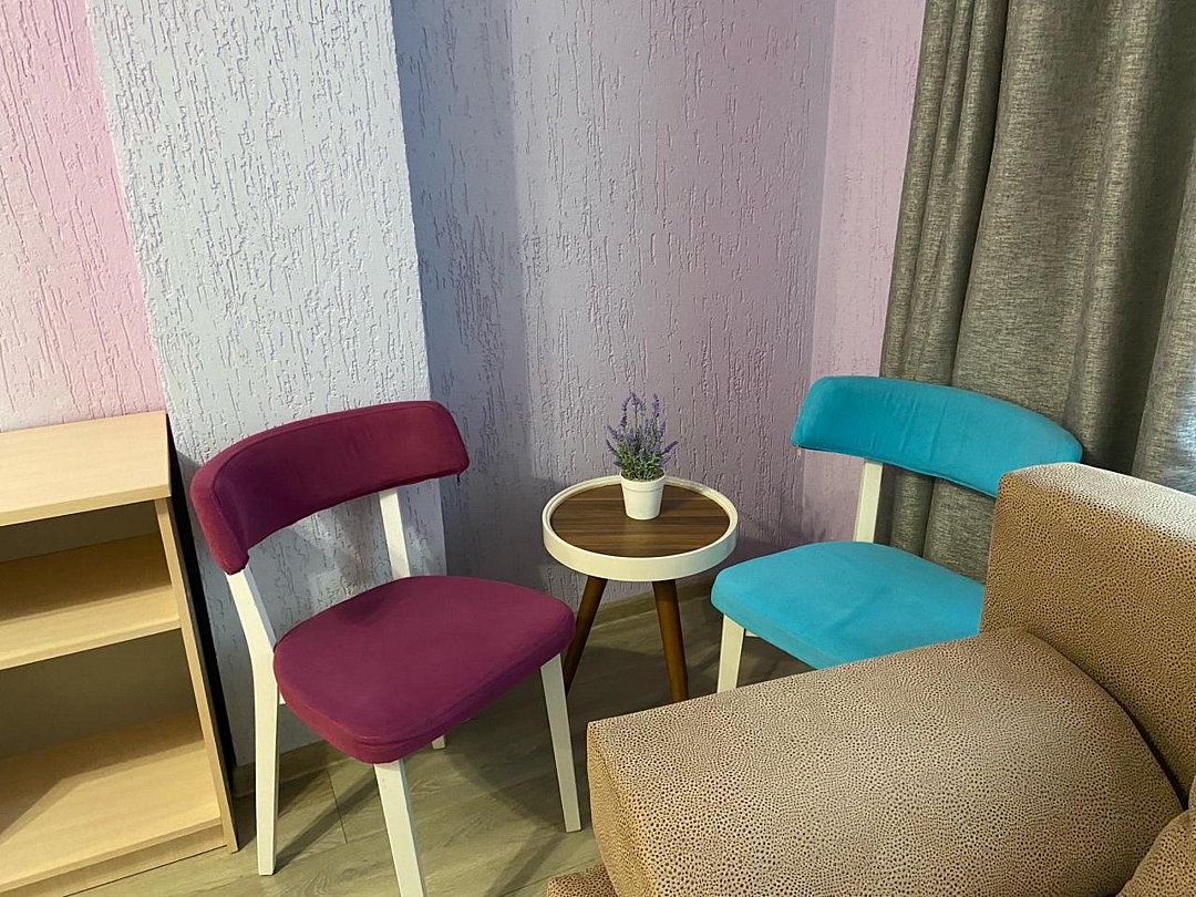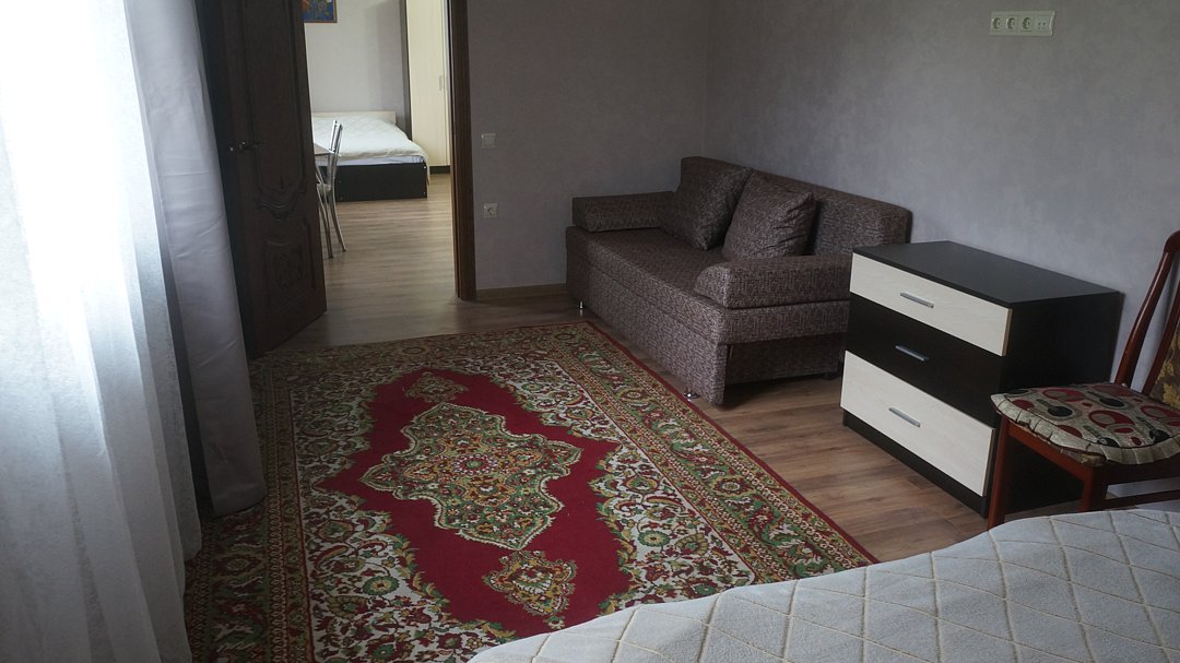 Просторный номер с двумя зонами. Возможно проживание 4-х гостей. Номер оборудован мини-кухней, холодильником, кондиционером, телевизором и мебелью для комфортного проживания.В гостиничном номере
