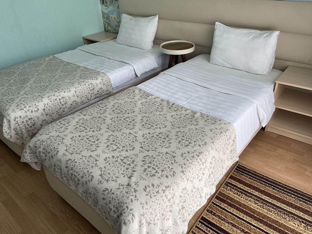 Двухместный номер с двумя кроватями, собственной ванной комнатой. Номера это категории располагаются на 2,3,4 этажах. Все номера имеют балкон, оборудованный сушилкой для белья, столом и двумя стульями. В номере кабельное телевидение, кондиционер, холодильник.В гостиничном номере