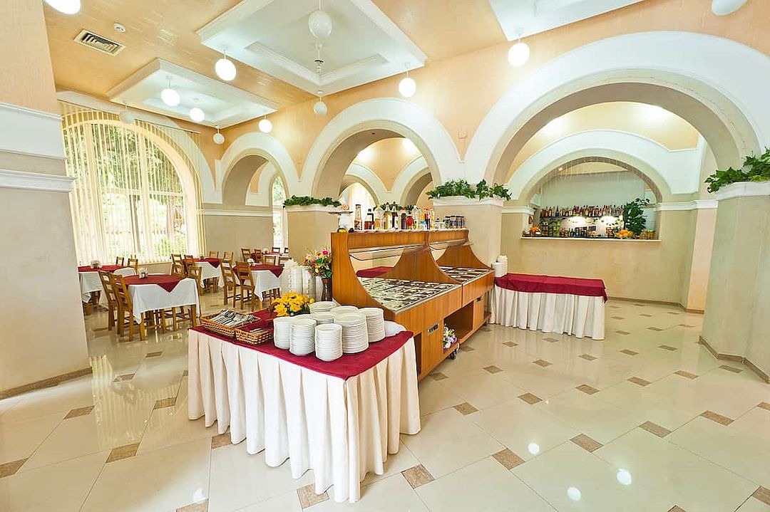 Всем гостям в пансионате предоставляется 3-разовое питание по системе «Шведский стол» в собственном ресторане. Ежедневно в меню свежайшие блюда русской, кавказской и итальянской кухонь. Питание не включено в стоимость в период низкого сезона (с 21.10 по 28.04).