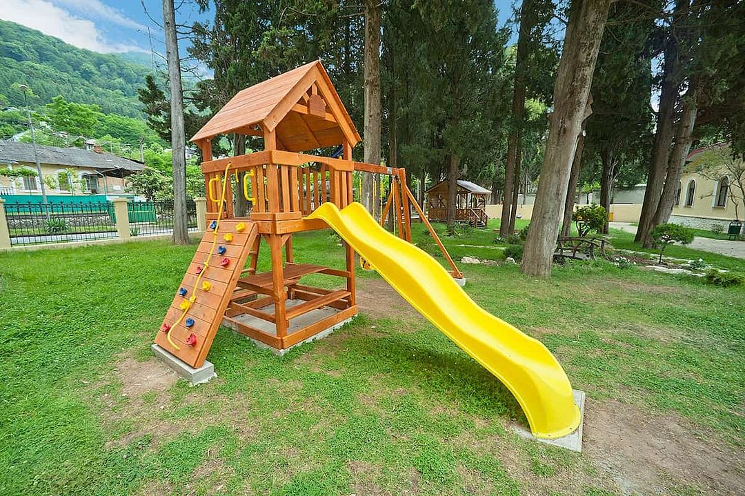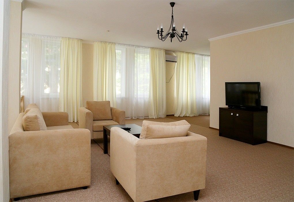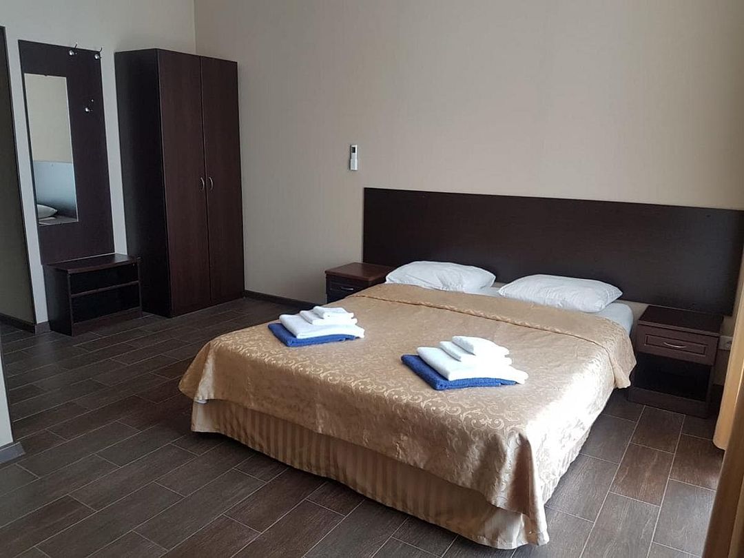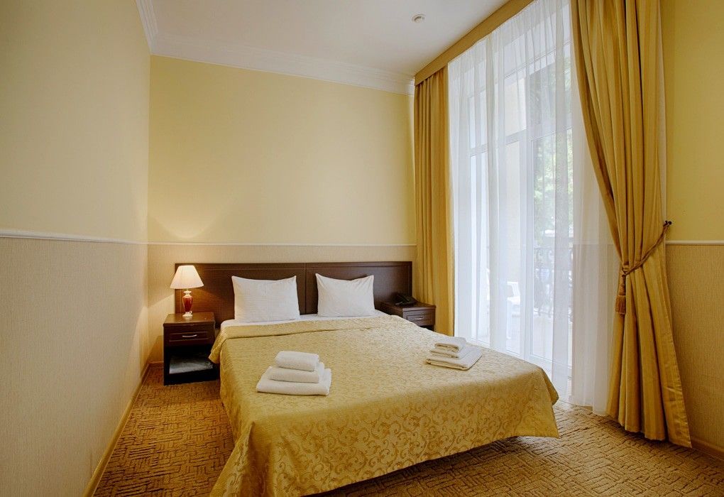 Собственная огороженная территория отеля благоустроена и ухожена. Здесь масса великолепных субтропических деревьев и кустарников, уютных уголков и зон отдыха. Два гостиничных корпуса вмещают жилой фонд, состоящий из 77 номеров различных категорий. Все номера пансионата имеют отдельный санузел с ванной и оборудованы набором необходимой бытовой техники: кондиционером, холодильником, телевизором.